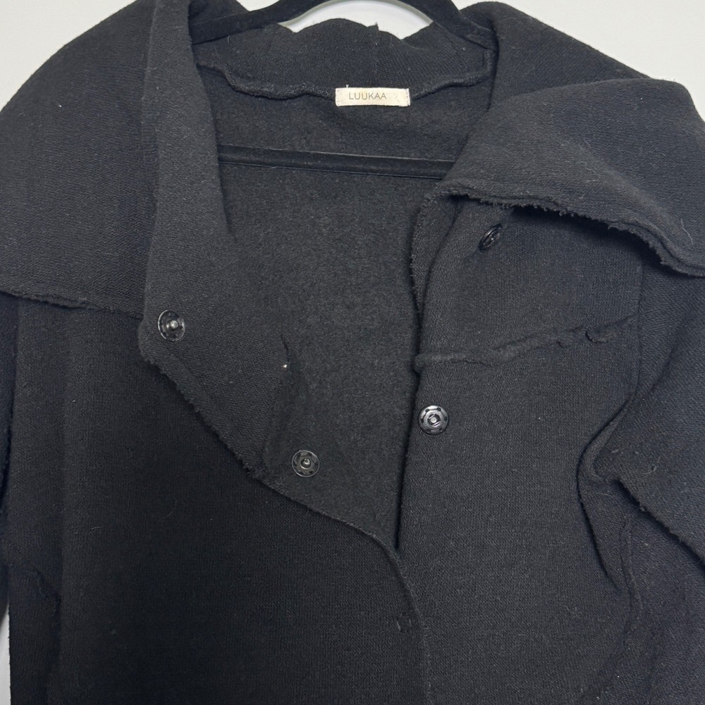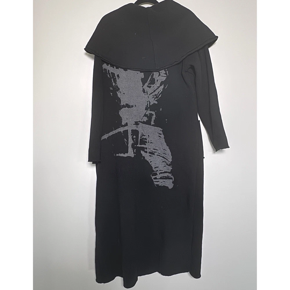 This avant-garde longline cardigan features a dramatic oversized shawl collar and a striking abstract graphic print on the back. Crafted from a cozy wool blend, it showcases raw-edge seam detailing and a snap-button front closure for a modern, deconstructed look. The silhouette is elongated and artistic, perfect for layering in cooler weather. Measurements: • Length: 51" Style Code: 16KLA3004 Keywords: Avant Garde, Lagenlook, Gothic, Minimalist, Deconstructed, Artistic, Oversized, Wool Blend, Longline, Abstract, Darkwear, Designer, Edgy, Streetwear, Turkish Design Please take a look at my other listings. I'm always happy to combine shipping. Reach out if you have any questions before making a purchase Please review all pictures as they are part of the description. Every effort is made to include measurements and point out flaws, scuffs, stains, defects. Note that color made be slightly different based on picture lighting or device you are using to view.