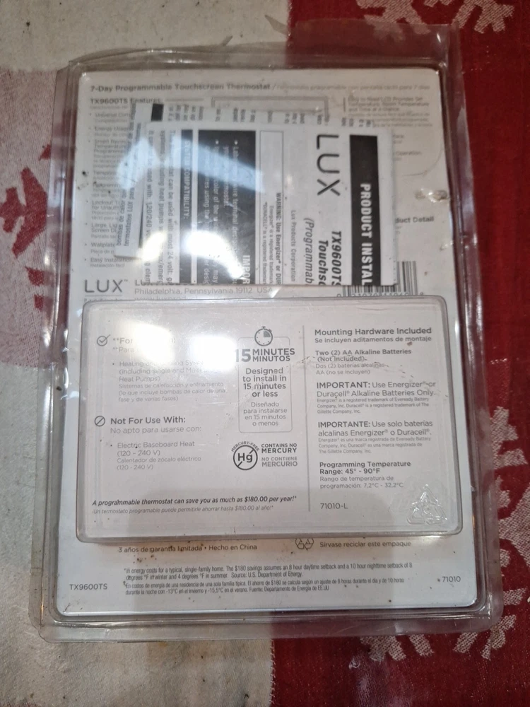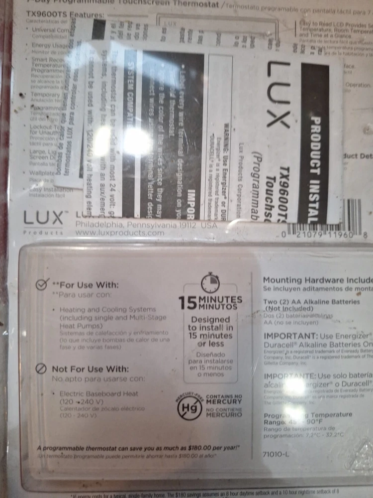 Lux 7day Programmable Touchscreen Thermostat