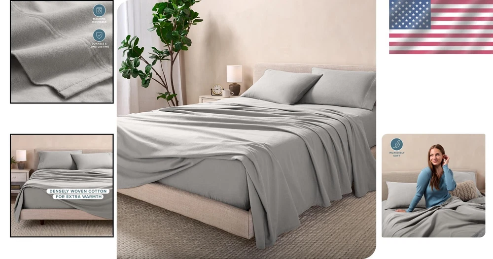 Luxurious 4-Piece Flannel Bedding Set - Deep Pocket Queen, Light Grey Winter ‹ › ‹ › ‹ › ‹ › ‹ › ‹ › ‹ › ‹ › ‹ › ‹ › ‹ › Luxurious 4-Piece Flannel Bedding Set Deep Pocket Queen, Light Grey Winter WHAT’S INCLUDED: Queen Fitted Sheet with 15” deep pockets (60” x 80”) Queen Flat Sheet (90” x 102”) Two Standard Pillowcases (20” x 30”) Features: Soft & Durable: Crafted from tightly woven, high-quality flannel for a gentle, extra-soft feel. Winter Warmth: Perfect for staying toasty warm during the colder months. 100% Cotton: Hypoallergenic, breathable, skin-friendly, and eco-conscious. Machine Washable: Designed for convenience without sacrificing quality. OEKO-TEX STANDARD 100 Certified: Rigorously tested against harmful substances. Benefits: Experience plush comfort and warmth during chilly nights. Unwind in a hypoallergenic sleeping environment, ensuring your skin stays irritation-free. Easy to care for, ensuring your bedding remains fresh and pristine. Safe for you and your family, with a commitment to eco-friendly manufacturing practices. Why Choose Our Luxurious Flannel Bedding Set? Transform your sleep experience with our Luxurious 4-Piece Flannel Bedding Set, where comfort meets sophistication. Each element of this bedding set has been meticulously curated to elevate your sleeping sanctuary. The deep pockets ensure a secure fit on your mattress, while the soft, durable flannel keeps you warm and cozy during those frosty nights. Gift yourself or a loved one a touch of indulgence this winter—choose a bedding set that promotes safety, comfort, and elegance. Detox your sleep with bedding made without harmful chemicals and dyes. Choose wisely; choose luxury that cares. Shipping Free & Fast Shipping - We offer free shipping to most of the USA with a normal delivery time of 3-7 days. However, due to the current situation, additional delivery time (up to 3 weeks) may be required for some items. Alternative Carriers - We may use alternative carriers (e.g. USPS, FedEx, UPS, etc.) to ensure your package arrives safely and on time. Due to the use of multiple carriers, we are unable to provide a tracking number automatically. Handling Time - Orders are processed and shipped within 1-2 business days of receiving cleared payment. Shipping Restrictions - Shipping to Alaska, Hawaii, Puerto Rico, Guam, and other US territories may incur shipping charges or delivery restrictions. Please contact us before ordering, or your order can be refunded/cancelled. State Restrictions - There may be restrictions based on your state of purchase. For example, certain items may not be shipped to California due to state regulations. Contact for Tracking Updates - If you require tracking updates or have any concerns about the delivery of your order, please feel free to contact us, and we will be happy to assist you. Return Please see our eBay Return Policy. Thank you. Payment We accept all major credit cards, PayPal, and Apple Pay for your convenience. Your payment information is secure and encrypted to ensure a safe and seamless transaction. Please complete your payment within 3 days of purchase to avoid any delays in shipping. Feedback Your feedback is extremely important to us. We strive to provide the best products and customer service possible. If you are satisfied with your purchase, please take a moment to leave us a positive review. If you have any concerns or issues with your order, please contact us before leaving negative feedback. We are committed to resolving any problems and ensuring your satisfaction. Contact Us If you have any questions or concerns, please feel free to reach out to our customer support team. You can contact us through the eBay messaging system. We are available Monday to Friday, 9:00 am to 5:00 pm EST, and we will do our best to respond to your inquiry within 24 hours. Thank you for supporting our small family business! UPC: Not Set Item Length: Not Set Item Width: Not Set Unit Quantity: 1 count Material: 100% Cotton,Flannel Character: Not Set Theme: Luxury Care Instructions: Machine Wash Features: Breathable,Hypoallergenic,Machine Washable Department: Adults Room: Bedroom Labels & Certifications: Not Set Brand: Unbranded Size: Queen Type: Sheet Set Color: Light Grey Pattern: Solid Character Family: Not Set MPN: Not Set Country/Region of Manufacture: Not Set Thread Count: 301-400 Style: Modern Shape: Rectangular Model: Not Set GSM (Grams per Square Meter): Over 800 Product Line: Not Set Unit Type: Unit