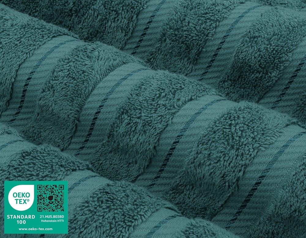 Absolutely love this Turkish cotton towel set! The teal color is gorgeous, and the towels are incredibly soft, plush, and absorbent. They dry quickly and feel luxurious after every shower. The set has the perfect mix of sizes, and the quality is top-notch—thick yet lightweight. Machine washing is a breeze, and they come out just as fluffy. The OEKO-TEX certification gives me peace of mind. Highly recommend for anyone wanting a spa-like experience at home!