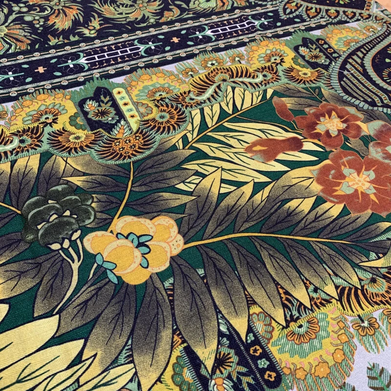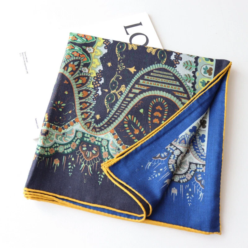 Luxury 70% Cashmere 30% Silk Double-Faced Square Shawl with Floral Print 53x53