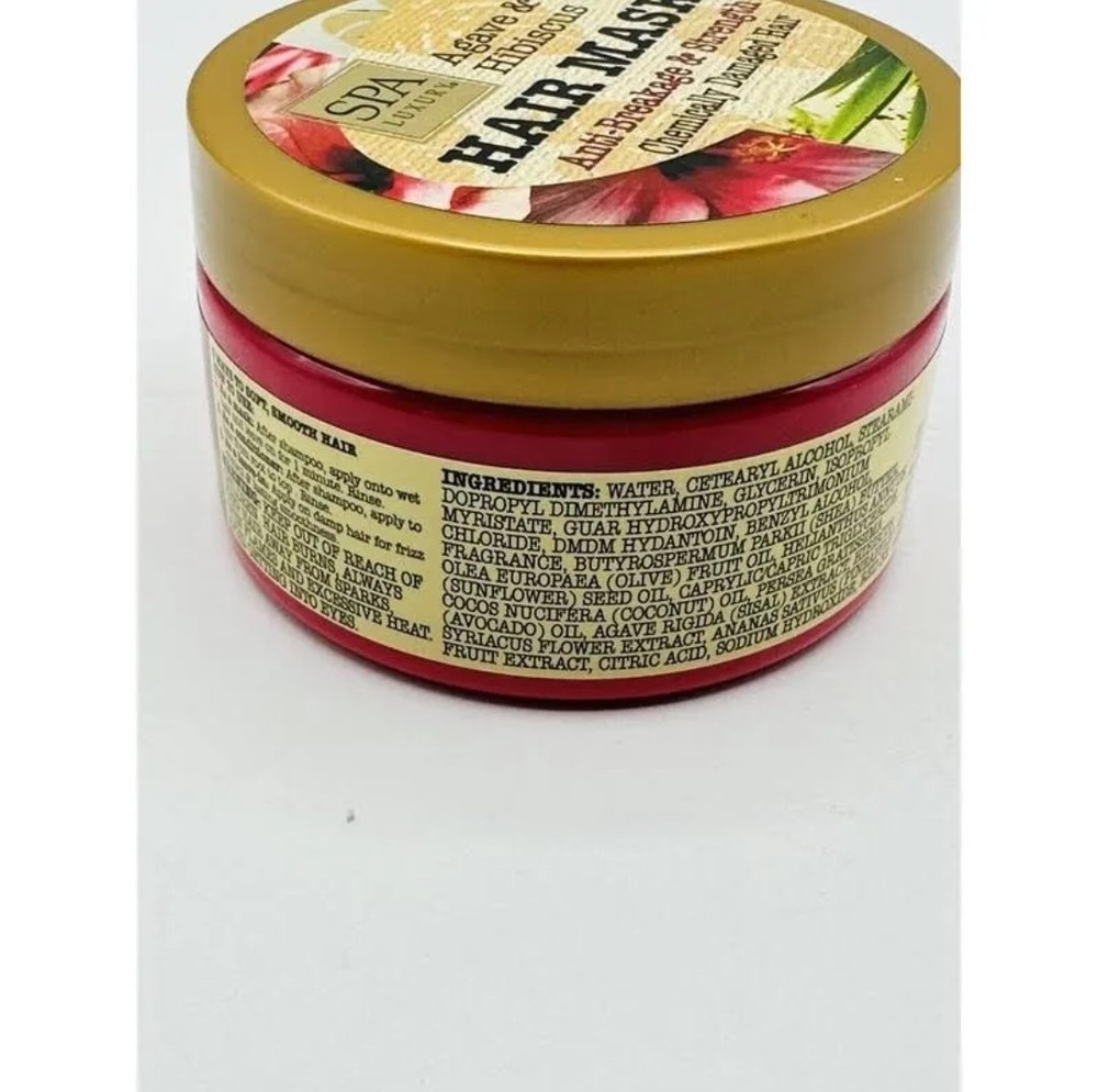 SPA Luxury Agave/Hibiscus Anti-Breakage & Strength Chemically Damaged Hair Mask. ☆ SPA Luxury Agave & Hibiscus Hair Mask 6oz • designed for anti-breakage and strength, specifically for chemically damaged hair. • This hair mask combines agave and hibiscus, ingredients known for their beneficial properties for hair. • Hair masks, in general, are used to hydrate and nourish hair, often applied after shampooing to allow for better penetration into the hair follicles. • They can be left on for a period of time before rinsing, providing deep conditioning and helping to restore moisture and shine to the hair. • Other ingredients include- Avocado Oil, Coconut Oil, Sunflower Seed Oil, Shea Butter, and more BNIB #spaluxury #hair #hairmask #agave #Hibiscus #antibreakage #chemicallydamagedhair #nourishing #pineapple #siliconefree #sulfatefree #smoothing #strengthening