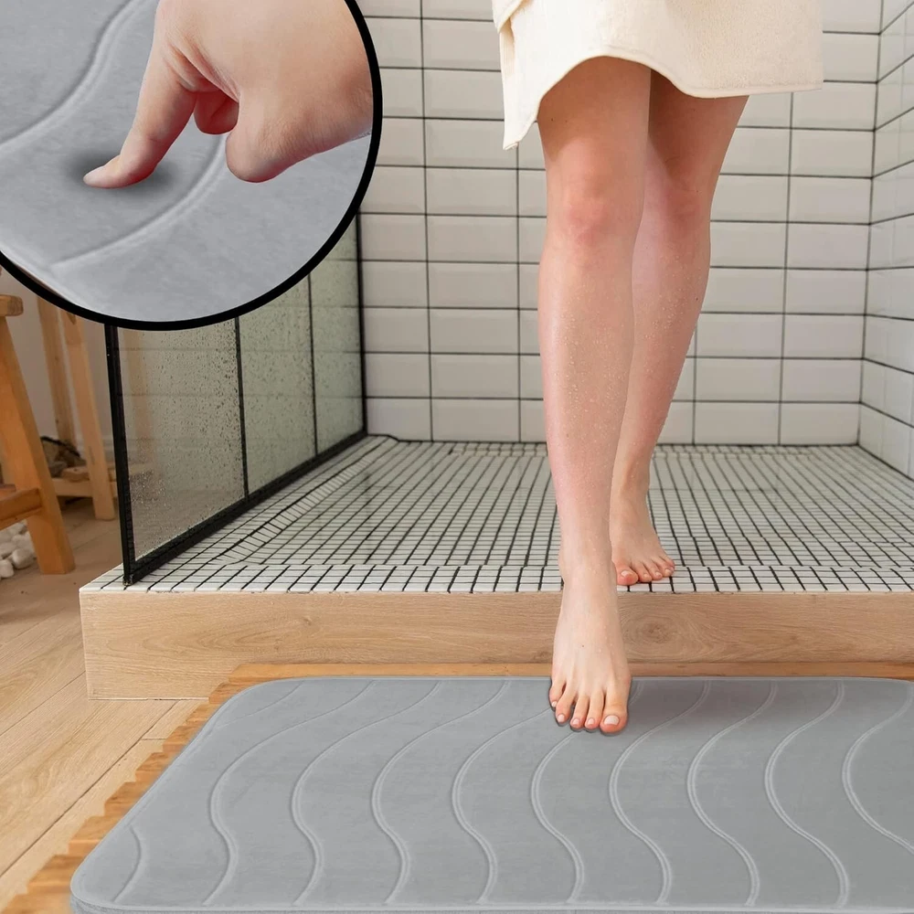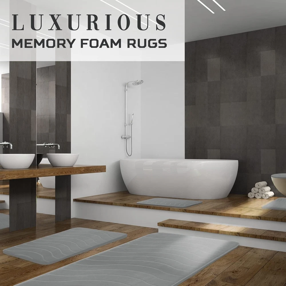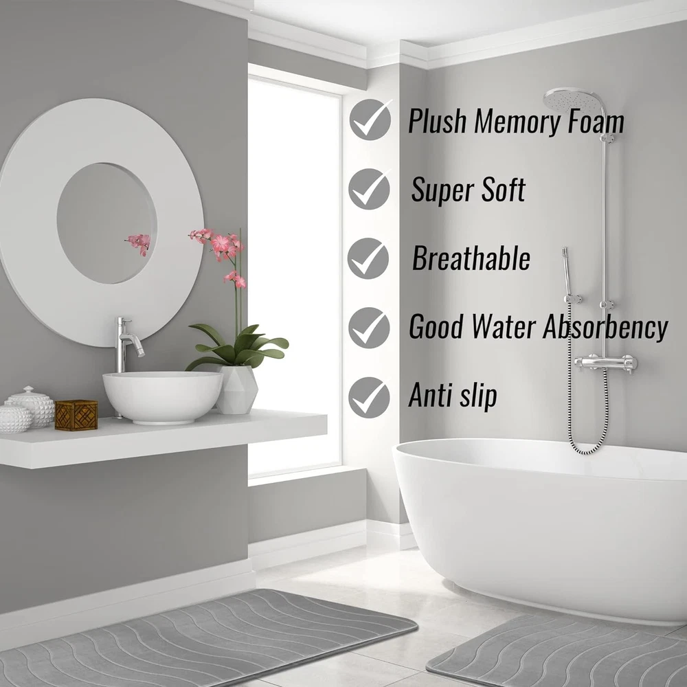 Luxury Bathroom Rugs Set 5 Piece - Memory Foam Bath Mat Set, Toilet Rug Set. Strong Absorbent, Non-Slip, Ultra Soft, Easy to Clean, Gray