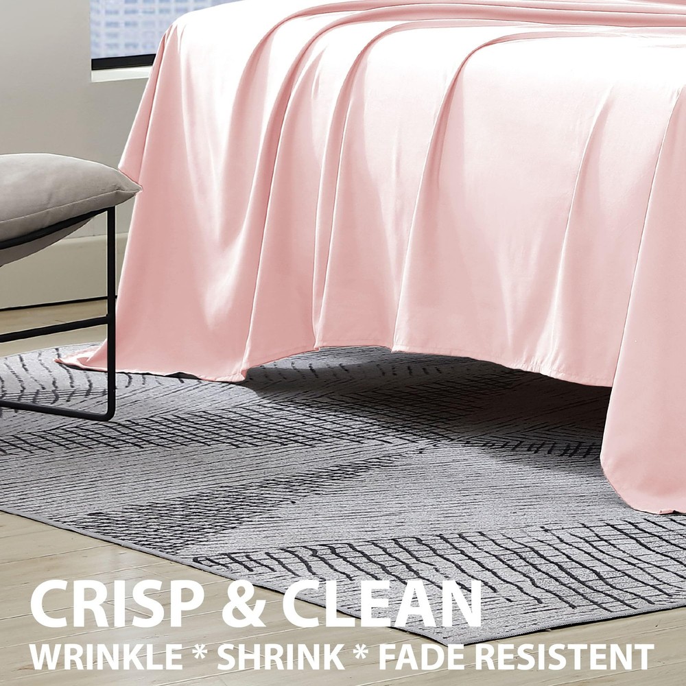A good night's sleep starts with the right bedding, and sometimes, you find yourself in need of replacing only part of that bedding. Why pay for a whole new set when only piece is ripped, stained, or simply worn out ? With this great deal on a single flat sheet, you don't have to ! The super-soft and silky-smooth feel microfiber fabric is hypoallergenic, and its array of solid colors allows you to match the rest of your existing bedding or shake things up with a coordinating hue. WHAT’S INCLUDED - King size: 1 Flat Sheet 102" x 105". IRRESISTIBLE BEDDING - This beautiful flat sheet will enhance the comfort of your bed and the style of your bedroom. Made of 100% double brushed microfiber, it is lightweight, durable, and buttery soft. *Microfiber is an umbrella term for ultra-fine synthetic fibers that are commonly made from polyester and polyamide. HOME ESSENTIALS - Available in a wide assortment of vivid color options ranging from neutral to bold, this flat sheet, suits any style. *Please bare in mind that due to the difference in lighting and monitor settings, the color of the actual product may vary slightly from wht you see on screen. EASY CARE - They are also machine washable and quick drying for easy care. OEKO-TEX CERTIFIED - Tested and certified to be free from harmful chemicals, the sheets meet high safety standards.