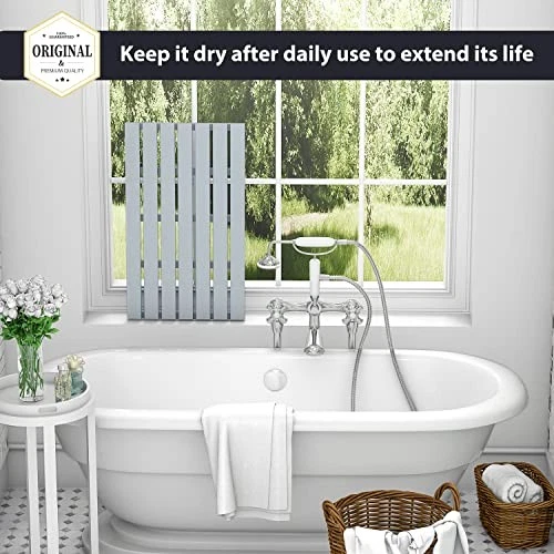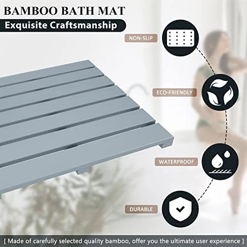 30 Days Return Policy Fast Delivery Trusted seller Bamboo Wooden Bath Floor Mat for Luxury Shower - Non-Slip Bathroom Waterproof Carpet for Indoor or Outdoor Use (Bluish Grey,31.3 x 18.1 x 1.5 Inches) Product Description EXCELLENT SLIP RESISTANCE : Soft non-slip rubber feet under the bamboo shower mat will not only ensure your safety but also protect your floor away from scratches TOP-QUALITY MATERIAL: Bamboo has the characteristics of renewability and shorter growing duration which are accordant with the environmental protection concepts, but as sturdy as those synthetic material WATERPROOF PERFORMANCE : The bamboo mat with three-layer waterproof coating has slatted surface which can conduce to drainage; unlike those cloth mats on the market which will absorb a lot of water and get moldy easily EASY to CLEAN: The smooth surface makes the mat stain resistant and can keep dirt from staying on the mat, so it’s easy to keep clean; just use a dry cloth to wipe it after daily use; completely free your worries of cleaning problems VERSATILITY: The floor mat is ideal for bathroom, kitchen, entryway, hallways, office, spa or sauna, the stylish look also makes it a modern home decor; as for the outdoor use, such as swimming pool, outdoor shower room and you can even take it when you go to the beach,etc Shipping Returns Payment Shipping Shipping is FREE to all addresses other than APO/PO boxes in the lower 48 states. All our stock ships from US-based warehouses. Shipped via USPS or UPS (depending on location and package weight) Unless stated otherwise, all orders will ship within 24-72 hours of your payment being processed. Check our feedback to see the great reviews of FAST shipping we offer. Returns As our valued customer, we will do our best to make sure the product you receive arrives to you on time and as expected. If you are not satisfied with your purchase, please contact us within 30 days of receiving your order to process a return. Payment We currently accept payment via eBay managed payments only. Once payment is cleared, we will dispatch your shipment within 1-3 business days. Please refer to the "Shipping" tab for more information regarding shipping speed to your destination.