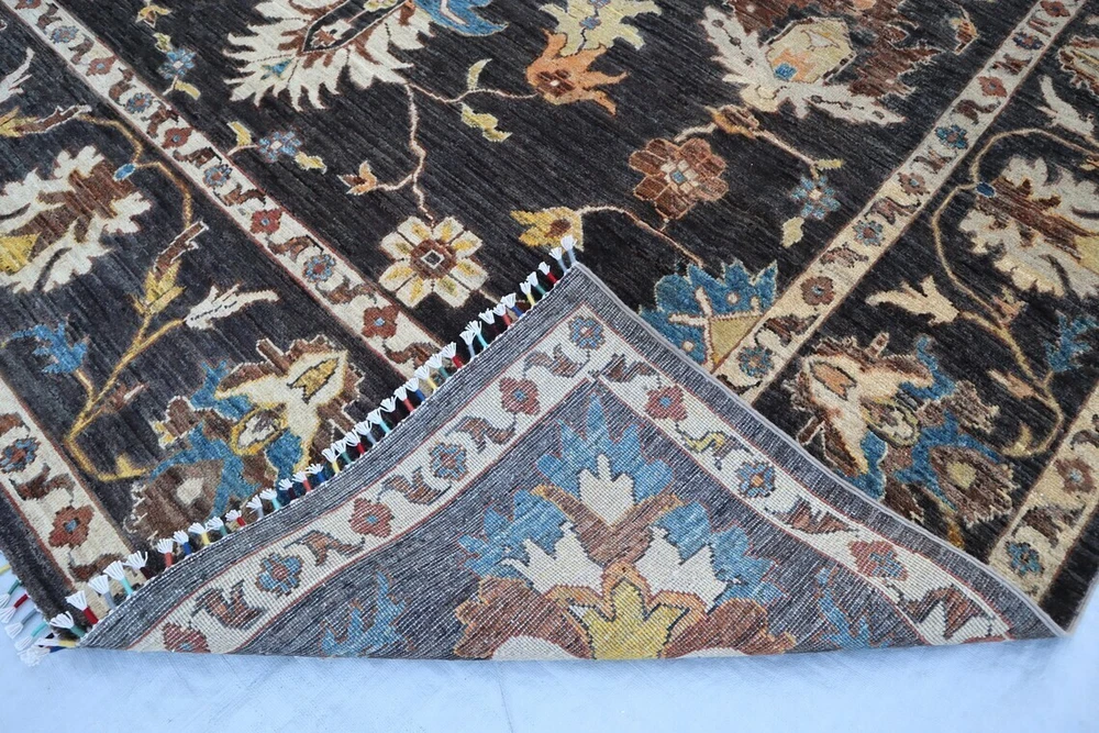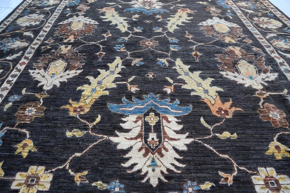 Elevate your space with this exquisite hand-knotted wool carpet, featuring a timeless traditional oriental design. The rich black base is adorned with intricate floral and geometric patterns in shades of blue, beige, and brown, making it a perfect statement piece for any living room, bedroom, or office. Key Features: ✔ Oushak Rug ➤Completely new area rug ➤100% hand-knotted and hand finished ➤Due to the hand-made nature of the rug, size may vary by 2 to 3 inches. Please let me know your requirements in case a specific measurement is required. ➤ Uses the old traditional techniques and designs of the migrated masters of the Orient ➤One of a kind incredible design and color palette ➤ High-Quality Natural Wool ➤ Has a very rich and soft pile ➤ Dyed with natural colors ➤ At no point chemicals, colors, or processes were used in making this rug ➤ Multiple sizes are available, some for immediate delivery and others made-to-order. ➤ Make-to-order rugs take about 30–40 days ➤Free, expedited shipping everywhere ✔ Perfect for Traditional & Modern Interiors Care Instructions: Vacuum regularly to maintain its appearance. Spot clean with a mild detergent or seek professional cleaning for best results. Add sophistication and warmth to your home with this luxurious hand-knotted wool carpet. Fast shipping and secure packaging guaranteed. Feel free to message for additional details or custom inquiries. All Carpets in My Store are Made up of 100% wool, this exquisite hand Knotted rug is durable with a gentle feel. A medium-thick pile in contrasting heights adds delightful decorative complexity, while still maintaining softness & warmness underfoot. The defining details of this rug are sure to make it a conversation piece and an icon of your household. It is a joy to step out of bed in the morning onto these rugs and also perfect for rolling out in a calming nursery or a delightful playroom. Material used:- WOOL AND COTTON PLEASE NOTE:- The images we display have the most accurate color possible. Due to differences in computer monitors, we cannot be responsible for variations in color between the actual product and your screen. Please be advised that in some cases patterns and colors may vary according to size Feedback 1. We depend on our customer satisfaction to succeed. therefore, your feedback is extremely important to us. 2. If you are satisfied with our service, please leave positive feedback to us. thank you! 3. Contact us before leaving any negative or neutral feedback, we will try our best to solve any problems. Terms 1. We will check all the product before shipping to you. 2. If the item is defective, please contact us at once, we will send a solution the first time. 3. Any import charges or fees are the buyer's responsibility. 4. Please check out your ADDRESS carefully when processing an order. 5. Feel free to contact us with any question or query, and any other things like for bulk orders or any custom order we will offer you a satisfying answer. Shipping: All items will ship promptly after payment has cleared Payneer. Please provide the correct and updated address and Contact Number for shipping. Usually takes 5-15 business days for the delivery. Note :- We offer Free Shipping All Across The World. Thanks for Visiting UK HOME FURNISHING