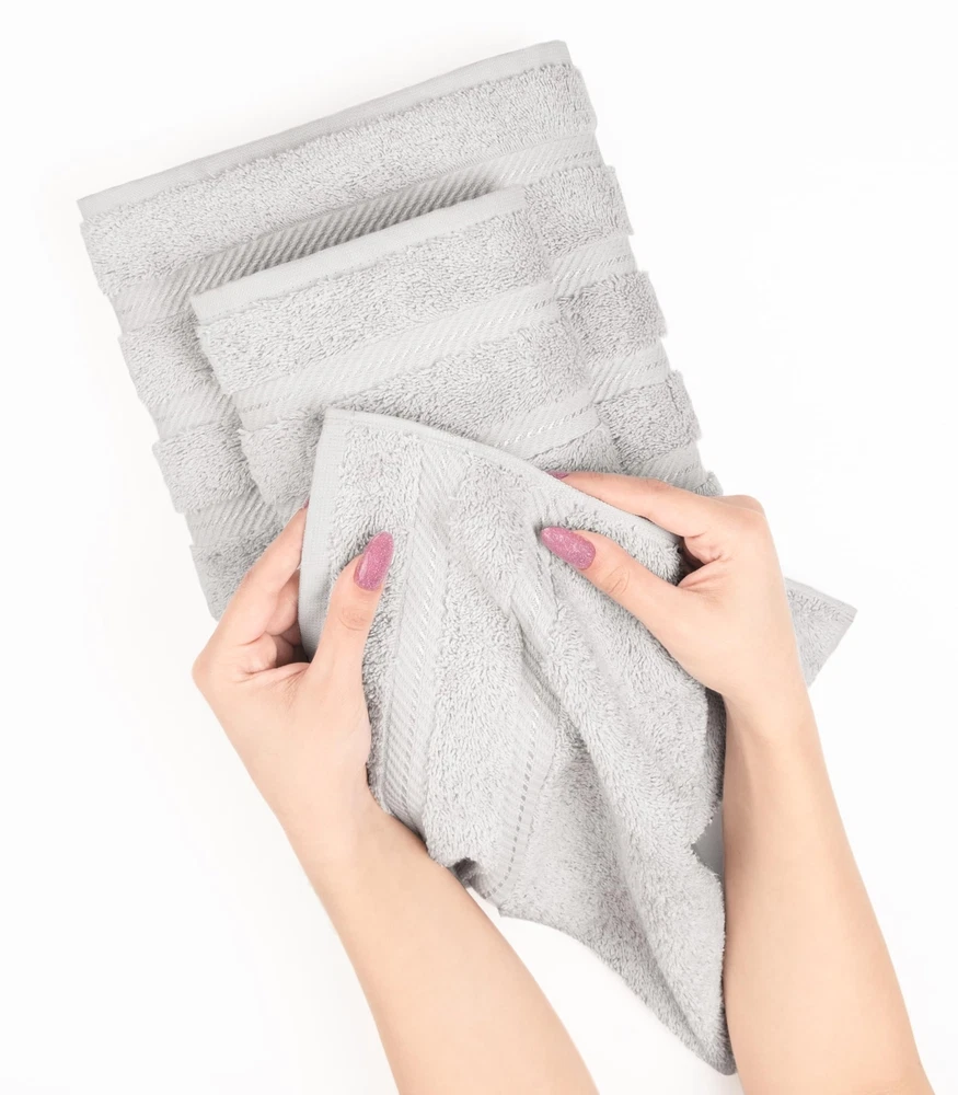 Size: Hand Towel Set of 4 Type: Does not apply Package Dimensions LxWxH: 9.37x8.07x3.82 Inches gtin13: Does not apply Color: Silver Gray UPC: Does not apply Brand: American Soft Linen Material: Does not apply Weight: 1.43 Pounds