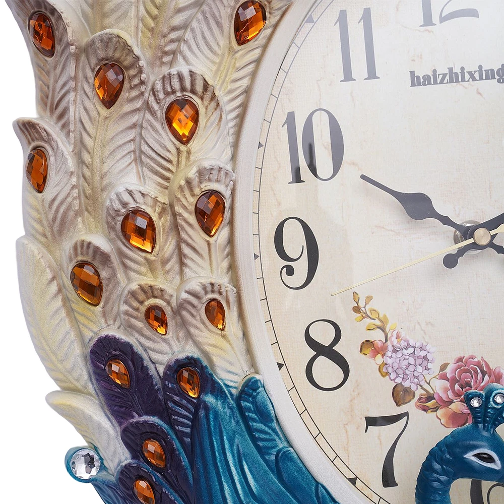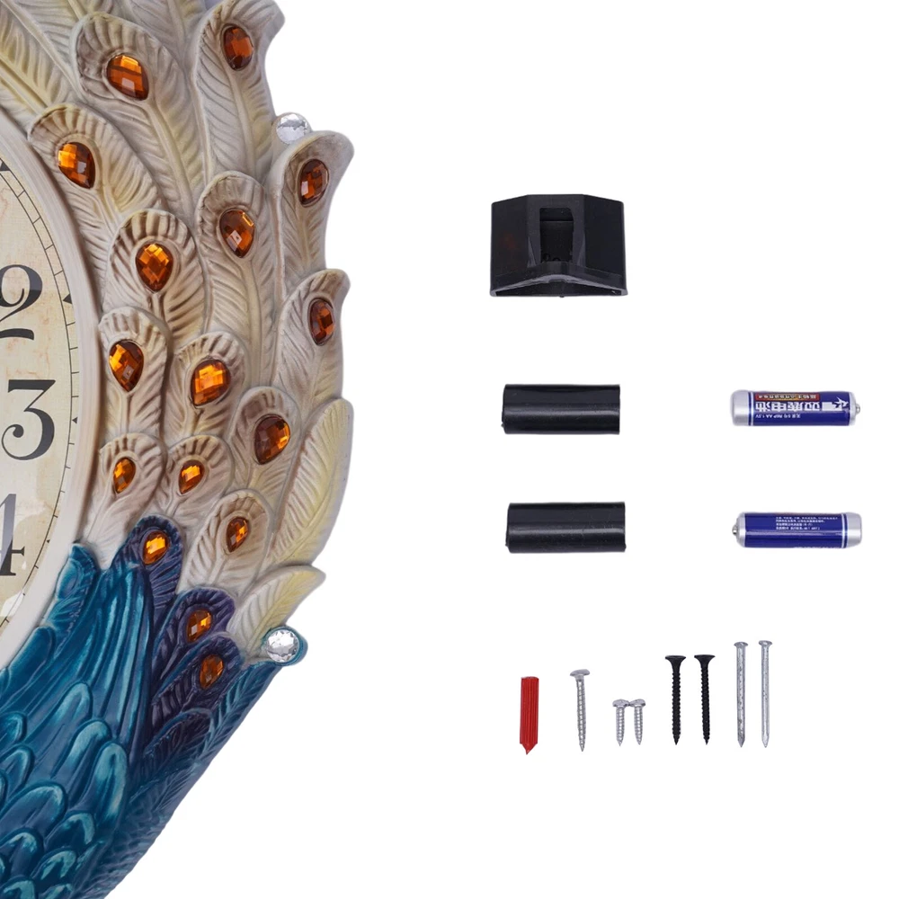 Luxury Large Wall Clock Peacock Wall Watch Living Room Home Decor Retro European Welcome to our store~ Clock Wall Decor for Living RoomTeal Silent Elegant Pendulum Clock with Luxury Crystal Large Peacock Clock Wall Decor ?? The luxurious wall-mounted Peacock pendulum clock presents a unique European style with elaborate carvings and a charming appearance. This uniquely shaped, richly colored wall pendulum clock adds glamour to your room like an elegant work of art. It uses a silent sweeping second movement, running at only 20-30 decibels, bringing you and your family a quiet and comfortable environmen ✔️Exquisite Appearance: The wall-mounted pendulum clock comes to life with lifelike animal feathers that show off its beauty. The unique appearance and brilliant colors create a luxurious, noble wall pendulum clock. ✔️High-quality Material: The wall-mounted pendulum clock is made of high-quality PVC. The excellent toughness and water resistance of PVC make this wall pendulum clock less prone to damage. ✔️Easy to Read: The wall-mounted pendulum clock adopts a larger digital clock dial, with clear and large numbers for easy reading. ✔️ Easy to Clean: The smooth clock plate and painted finish make this wall-mounted pendulum clock easy to clean. You just need to wipe it gently with a damp cloth. ✔️Fine Workmanship: The wall-mounted pendulum clock uses a professional injection molding process to make each feather lifelike, giving a wonderful sense of viewing. Its color uses a superb spray painting process to make it bright and beautiful. ✔️Silent Operation: The wall-mounted pendulum clock Features a silent sweeping seconds movement so you can say goodbye to the annoying ticking sound. The wall clock operates at only 20-30 decibels providing you with a quiet working and living environment. ✔️Accurate Timing: The quartz oscillator inside the quartz sweep seconds movement vibrates at a set frequency, so the timing is very accurate. ✔️Ideal Gift: The wall-mounted pendulum clock serves as a practical and beautiful decoration, it is perfect as a Christmas, Thanksgiving, housewarming, holiday, or birthday gift for your family and friends. ??Customer Service: We aim to provide quality products and services. If you have any problems, please feel free to contact us. We will reply and solve the problem for you as soon as possible. Application?? This wall-mounted pendulum clock is suitable for living rooms, hallways, bedrooms, and other places. It is not only a wall clock but also a good decoration. Specification ?? Material: PVC, Metal Color: Blue, Beige Style: European, Retro Time Display: Analog Indoor/Outdoor: Indoor Power Supply: 1AA Battery Mounting Type: Wall Mount Process: Injection Molding, Painting Operating Decibels: 20-30 DB Gross Weight: 1.8kg/3.96lbs Package Size: 50*41*13cm/19.68*16.14*5.1 Product Size: 37*60cm/14.57*23.62in Clock Plate Height: 46cm/18.11in Size of Glass: 19*25cm/7.48*9.84in Installation ?? 1.Direct the hook at the top holes, and make sure they match. 2.Tighten the screws to fix the hook. 3.Put the two stands into the bottom holes of the back cover. 4.Insert one AA battery. 5.Turn the handset knob of the movement to set the time. 6.Hang the pendulum on the hook carefully. 7.Just find a place to hang on this clock. Package Included ?? 1*Wall-mounted Pendulum Clock 1*Pendulum 2*AA Batteries All Accessories Needed for Installation Notes Please allow the slight color difference caused by the shooting light and 1-3cm error due to manual measurement. Please make sure you do not mind before you order. Payment Delivery details Terms of sales About us Contact us Payment We accept ebay payment 。 Fees such as import duties, taxes are not included in the item price or shipping costs. These charges are the buyer's responsibility. Delivery details Shipping: 2-9 working days to: USA Terms of sales We maintain high standards of excellence and strive for hundred percent customer satisfaction. Feedback is very important to us. We hope that you contact us immediately before you give neutral or negative feedback, so that we can address your concerns. It is impossible to address issues if we do not know about them! About us Your satis faction is our ultimate goal. We work hard to earn your trust and future business. Our certified technicians have tested each item before shipping. The unit comes with 1 year limited warranty on all manufacturing defects. a) If you receive a defective item, you may return it or ask for a discount. Please contact us within 14 days after you receive the package. b) What you returned must be intact and in its original packaging as re? u. Customer is responsible for shipping costs of the returned item. c) We will cover the cost of shipping back t with the shipping rate indicated in the registration page. We will send you a new unit or refund the full payment you paid. Thank you. Contact us Business Hour Business Hour: Monday To Friday: 8:30 AM to 5:00 PM (Beijing China time) Due to time zones, our reply to your questions may not be immediately. But within above working time, we will reply your email within 24 hours. If it's non-workdays, please kindly be patient and wait till Monday. Please contact us with ebay message. Please feel free to contact us if you have any questions. Monday To Friday: 8:30 AM to 5:00 PM (Beijing China time) Due to time zones, our reply to your questions may not be immediately. But within above working time, we will reply your email within 24 hours. If it's non-workdays, please kindly be patient and wait till Monday. Please contact us with ebay message. Please feel free to contact us if you have any questions. Feature 1 Compact Design,Unique Appearance,high reliability * Feature * Nice and Practical, High Quality Packaging Warranty Three years Features Fast shipping, High-quality material Highlights stable performance, Made of high quality material, Durable, Fast shipping, 3-year warranty Shipping notice Can no