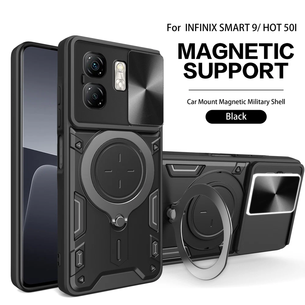 Magnetic Luxury Slide Lens Cover Case for Infinix Smart 9 with Camera Support