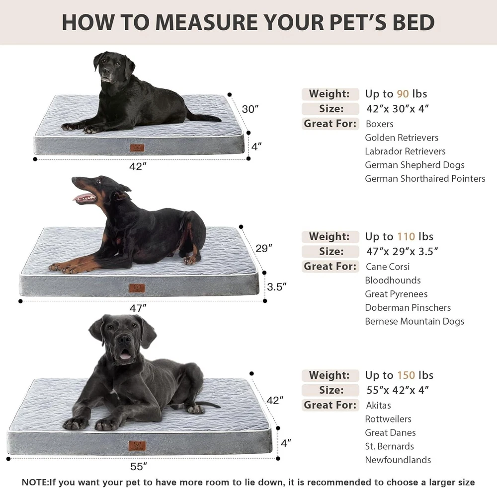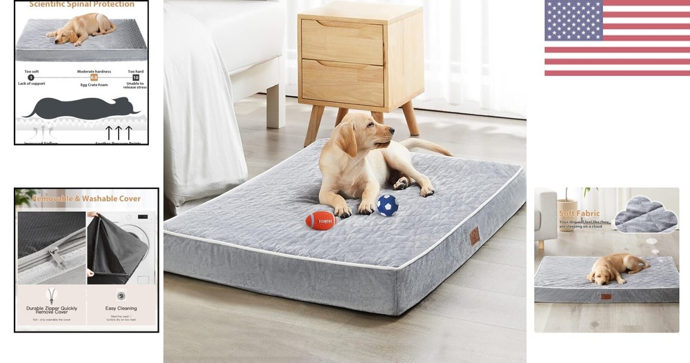 Luxury Orthopedic Dog Bed for Large Dogs | Waterproof & Anti-Slip XL Pet Mat ‹ › ‹ › ‹ › ‹ › ‹ › ‹ › ‹ › ‹ › Luxury Orthopedic Dog Bed for Large Dogs -Waterproof & Anti-Slip XL Pet Mat Features: Soft velvet surface for a delicate touch on your pet's skin Quilted design adds sophistication to your home decor Detachable and washable feature for easy cleaning High-density egg crate foam provides perfect pressure relief for joint pain and arthritis discomfort Waterproof layer to prevent mess and unpleasant odors Durable oxford cloth bottom with anti-slip dots Suitable for dogs weighing less than 90 pounds Benefits: Keeps your pet warm and cozy at night Promotes a cleaner and more hygienic environment for pets Provides relief for joint pain and arthritis discomfort Prevents mess and unpleasant odors Stays in place during playtime Suitable for medium and large breeds Comes with 100% support and a positive buying experience Why choose our Luxury Orthopedic Dog Bed? Your furry friend deserves the best, and our Luxury Orthopedic Dog Bed is just that. With a soft velvet surface, quilted design, and high-density foam, this bed provides ultimate comfort and support for your pet. The waterproof and anti-slip features make it practical and easy to clean, while the size is perfect for medium and large breeds. Don't settle for a basic dog bed - choose luxury and comfort for your pet. Order our Luxury Orthopedic Dog Bed today! Shipping Free & Fast Shipping - We offer free shipping to most of the USA with a normal delivery time of 3-7 days. However, due to the current situation, additional delivery time (up to 3 weeks) may be required for some items. Alternative Carriers - We may use alternative carriers (e.g. USPS, FedEx, UPS, etc.) to ensure your package arrives safely and on time. Due to the use of multiple carriers, we are unable to provide a tracking number automatically. Handling Time - Orders are processed and shipped within 1-2 business days of receiving cleared payment. Shipping Restrictions - Shipping to Alaska, Hawaii, Puerto Rico, Guam, and other US territories may incur shipping charges or delivery restrictions. Please contact us before ordering, or your order can be refunded/cancelled. State Restrictions - There may be restrictions based on your state of purchase. For example, certain items may not be shipped to California due to state regulations. Contact for Tracking Updates - If you require tracking updates or have any concerns about the delivery of your order, please feel free to contact us, and we will be happy to assist you. Return 30-Day Hassle-Free Returns - We want you to be completely satisfied with your purchase. If you are not, you can return the item within 30 days of receiving it for a full refund or exchange. Easy Return Process - To start a return, simply contact us and we will provide you with a prepaid return shipping label and detailed instructions. Restocking Fee - There are no restocking fees for returns. However, the buyer is responsible for return shipping costs if the return is not due to a seller's error. Refund Processing Time - Refunds will be processed within 5 business days of receiving the returned item in its original condition. Payment We accept all major credit cards, PayPal, and Apple Pay for your convenience. Your payment information is secure and encrypted to ensure a safe and seamless transaction. Please complete your payment within 3 days of purchase to avoid any delays in shipping. Feedback Your feedback is extremely important to us. We strive to provide the best products and customer service possible. If you are satisfied with your purchase, please take a moment to leave us a positive review. If you have any concerns or issues with your order, please contact us before leaving negative feedback. We are committed to resolving any problems and ensuring your satisfaction. Contact Us If you have any questions or concerns, please feel free to reach out to our customer support team. You can contact us through the eBay messaging system. We are available Monday to Friday, 9:00 am to 5:00 pm EST, and we will do our best to respond to your inquiry within 24 hours. Thank you for supporting our small family business!