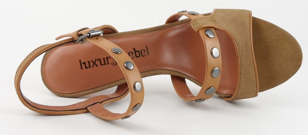 New/ clearance in original box Suede/ Man-made upper; Man-made lining; Man made sole Stacked heel measures 4 3/4"; Platform 1/2" * Decorative oxidized stud accents at straps Side buckle closure for easy on/ off Lightly padded footbed INSOLE 10 inches *Measurements are hand taken for every item we sell. Every item is carefully inspected to ensure that you receive a quality product. Designer Shoe Box guarantees this product is 100% Authentic