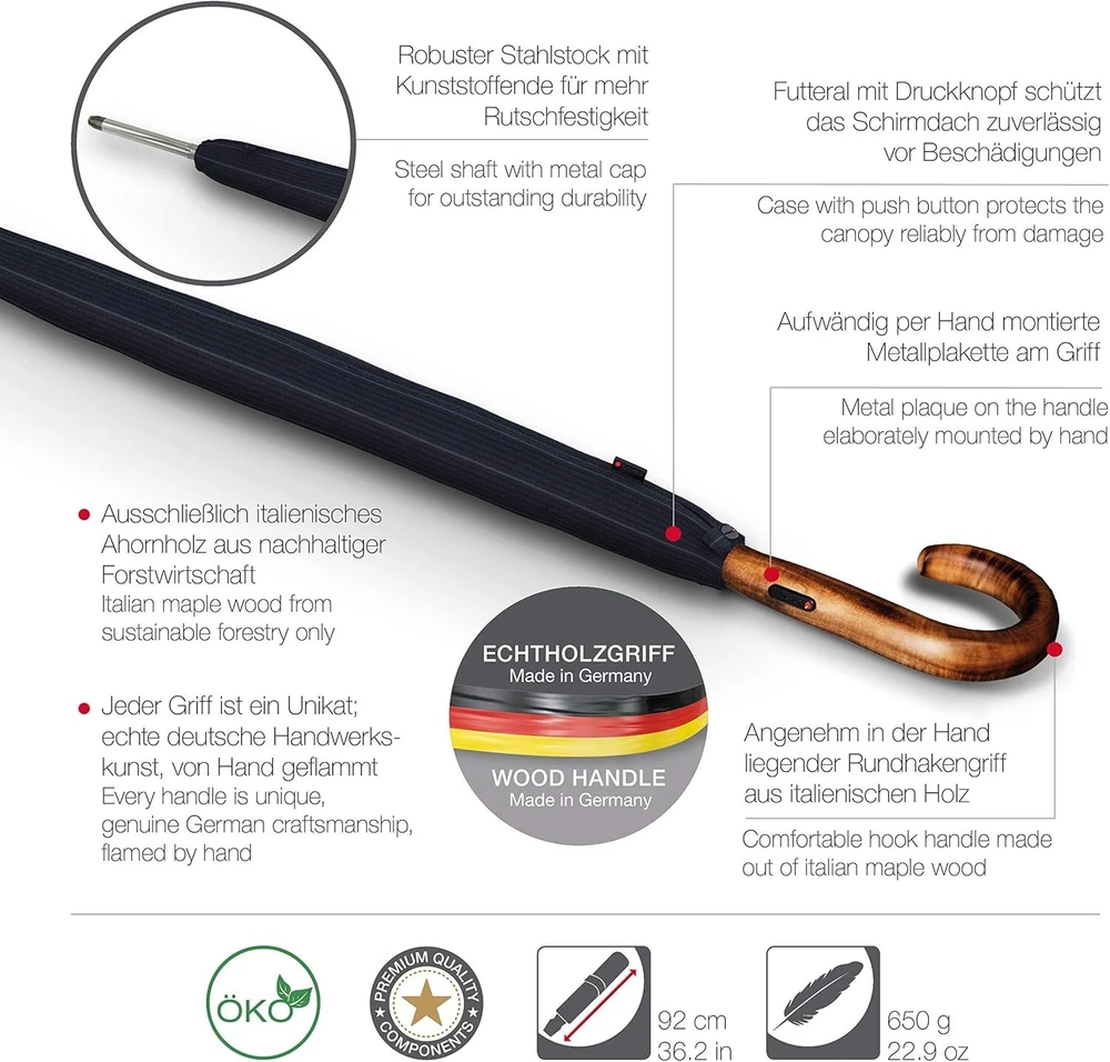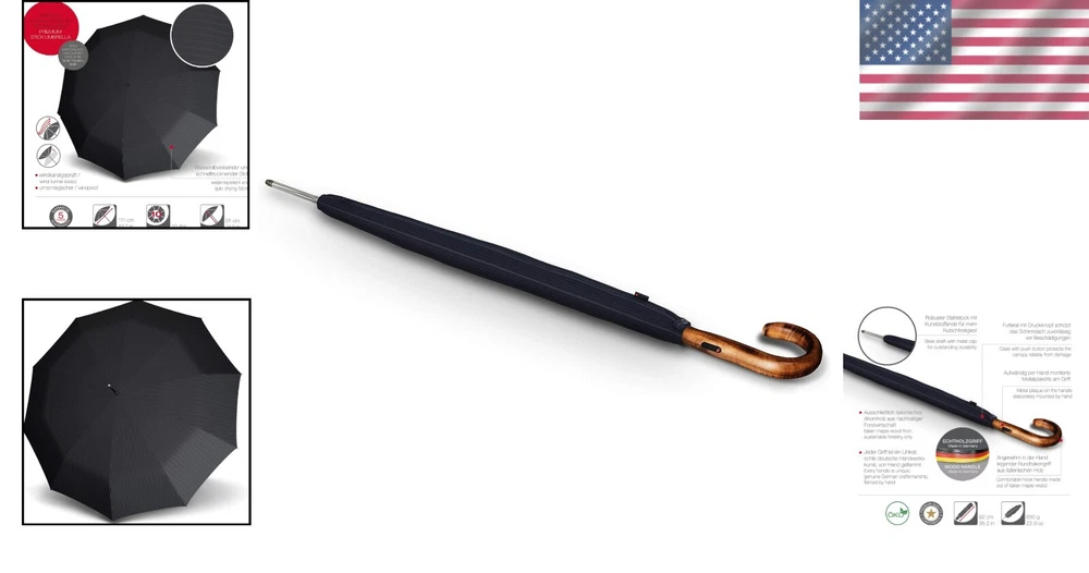 Luxury S.770 Long Automatic Stick Umbrella with Italian Maple Wood Handle ‹ › ‹ › ‹ › ‹ › ‹ › ‹ › ‹ › ‹ › ‹ › ‹ › Luxury S.770 Long Automatic Stick Umbrella Discover the perfect blend of style, functionality, and durability with the S.770 Long Automatic Stick Umbrella. Crafted with a luxurious Italian Maple Wood handle and an ergonomic design, this umbrella is the ultimate gift for the discerning gentleman. Key Features: Luxurious Italian Maple Wood handle, meticulously handcrafted for comfort and elegance. Automatic open function for effortless use, making it perfect for those on-the-go. Windproof design tested to withstand wind speeds of up to 62 km/h. 10 reinforced steel ribs and a durable fiberglass frame for exceptional longevity. Closed length of 92cm, perfectly portable for travel. OEKO-Tex certified fabric ensures safety and eco-friendliness. Includes a stylish protective case with snap fastener, maintaining its elegance while safeguarding against damage. Perfect For: A graceful gift for any man who appreciates both style and practicality. Ideal corporate gift for employees or clients during the holiday season. Thoughtful present for travel enthusiasts, combining convenience with sophistication. Why Choose the S.770 Stick Umbrella? Whether for yourself or as a gift, elevate your umbrella game with the S.770 Umbrella. Its exquisite craftsmanship and wind-resistant design ensure you stay dry and stylish in any weather. With a commitment to quality evident in its creation – each umbrella is produced through 31 meticulous steps – you can trust that it is built to last. With a 5-Year Promise included with all products, you're not just purchasing an umbrella; you’re investing in a reliable companion for years to come. Don’t settle for ordinary. Choose the S.770 Long Automatic Stick Umbrella and experience luxury redefined. Shipping Free & Fast Shipping - We offer free shipping to most of the USA with a normal delivery time of 3-7 days. However, due to the current situation, additional delivery time (up to 3 weeks) may be required for some items. Alternative Carriers - We may use alternative carriers (e.g. USPS, FedEx, UPS, etc.) to ensure your package arrives safely and on time. Due to the use of multiple carriers, we are unable to provide a tracking number automatically. Handling Time - Orders are processed and shipped within 1-2 business days of receiving cleared payment. Shipping Restrictions - Shipping to Alaska, Hawaii, Puerto Rico, Guam, and other US territories may incur shipping charges or delivery restrictions. Please contact us before ordering, or your order can be refunded/cancelled. State Restrictions - There may be restrictions based on your state of purchase. For example, certain items may not be shipped to California due to state regulations. Contact for Tracking Updates - If you require tracking updates or have any concerns about the delivery of your order, please feel free to contact us, and we will be happy to assist you. Return Please see our eBay Return Policy. Thank you. Payment We accept all major credit cards, PayPal, and Apple Pay for your convenience. Your payment information is secure and encrypted to ensure a safe and seamless transaction. Please complete your payment within 3 days of purchase to avoid any delays in shipping. Feedback Your feedback is extremely important to us. We strive to provide the best products and customer service possible. If you are satisfied with your purchase, please take a moment to leave us a positive review. If you have any concerns or issues with your order, please contact us before leaving negative feedback. We are committed to resolving any problems and ensuring your satisfaction. Contact Us If you have any questions or concerns, please feel free to reach out to our customer support team. You can contact us through the eBay messaging system. We are available Monday to Friday, 9:00 am to 5:00 pm EST, and we will do our best to respond to your inquiry within 24 hours. Thank you for supporting our small family business! UPC: Not Set Features: Automatic,Windproof,Automatic open,Manual close,Ergonomic design,Wind Tunnel Tested Character: Automatic Stick Umbrella Material: Fiberglass,Steel,Wood,Italian Maple Wood,OEKO-Tex certified fabric Theme: Automatic Stick Umbrella Accents: Not Set Brand: Unbranded Color: Striped Department: Automatic Stick Umbrella Type: Umbrella Style: Stick Pattern: Not Set Country/Region of Manufacture: Not Set Size: One Size MPN: Not Set Vintage: Not Set Personalize: Not Set Handmade: Not Set
