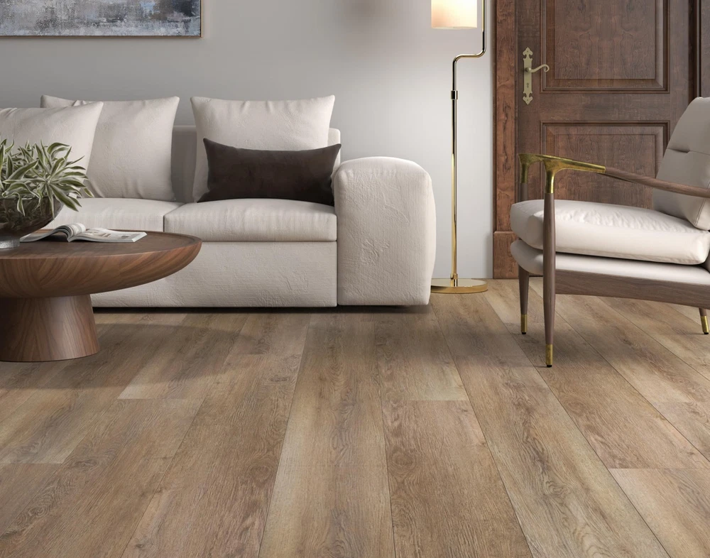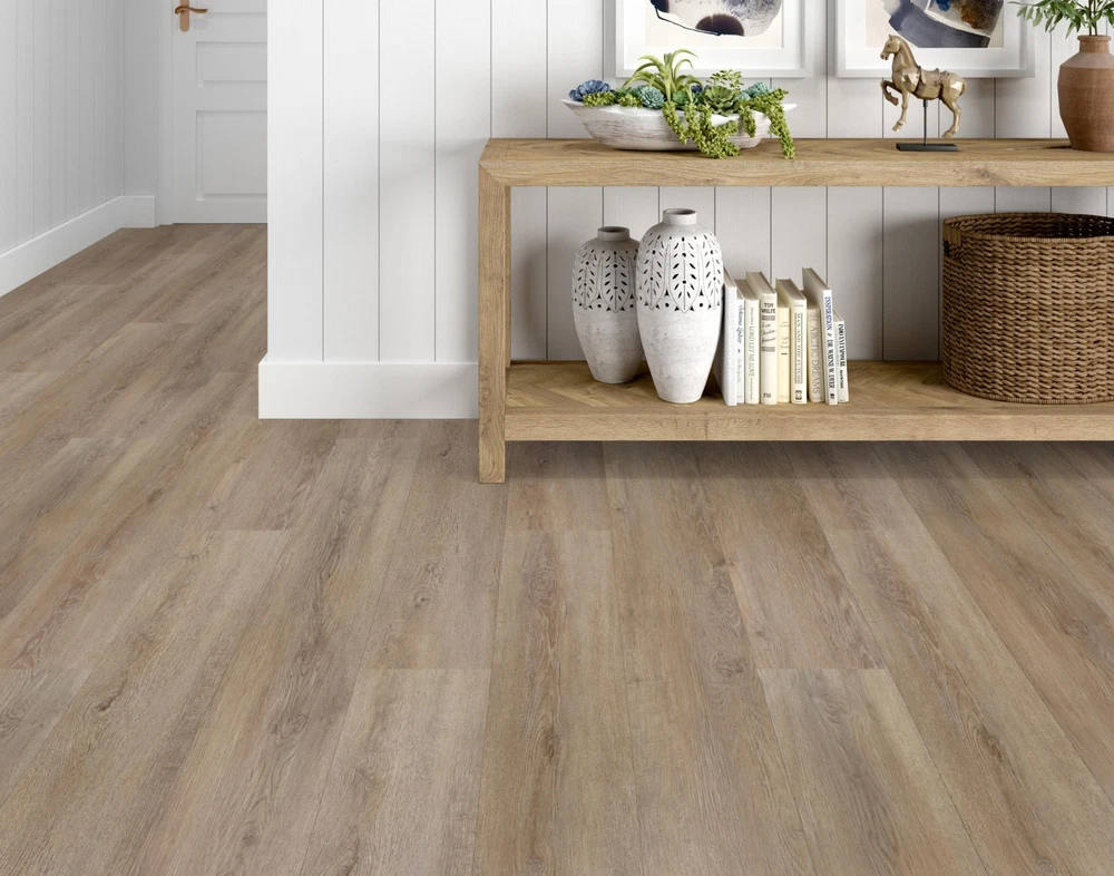 Luxury Vinyl Flooring: 9" x 60" wood-look planks Rich Color Palette: Brown and grey tones that are curated to elevate any space SuperGuard Technology: Reinforced, commercially graded shield added to the top wear layer of the tile to increase durability and ensure performance under everyday foot traffic Easy Installation: Uniclic locking installation clicks together with ease and speed 100% Waterproof: Built-in solid IXPE underlayment pad Limited 15 Year Light Commercial Warranty Limited Lifetime Residential Warranty