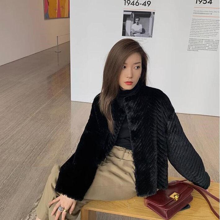 $ 60.72Women's Latest Lambskin Leather Motorcycle Biker Jacket Maroon Fur Collar Jacket