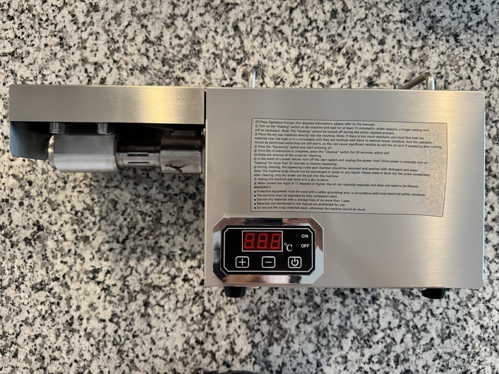 Condition: Pre-owned (USED). Cleaned and powers on. Testing: Unit heats up normally and the internal press rod/auger cycles/rotates (forward & reverse). I did not run a full oil extraction test with seeds/nuts, so it’s being sold as partially tested. Features (per unit/specs): • 1500W oil press / oil extractor • Cold/Hot press modes • Digital display with temperature control (approx. 122°F–662°F) Included: Oil press machine and the accessories shown in the photos (hopper/tray, collection containers/cups, small parts, power cord). No returns