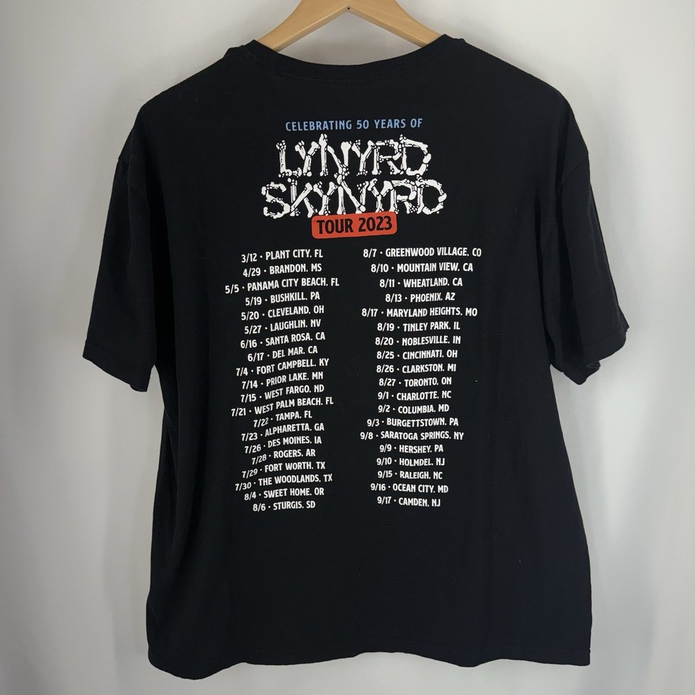 Lynyrd Skynyrd 50th Anniversary Tour 2023 T-Shirt – Men’s XL Official Lynyrd Skynyrd concert tour t-shirt celebrating 50 years, featuring front graphic and full 2023 tour dates printed on the back. A great piece for fans, collectors of modern tour merch, or anyone who attended the anniversary shows.