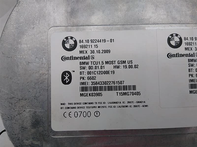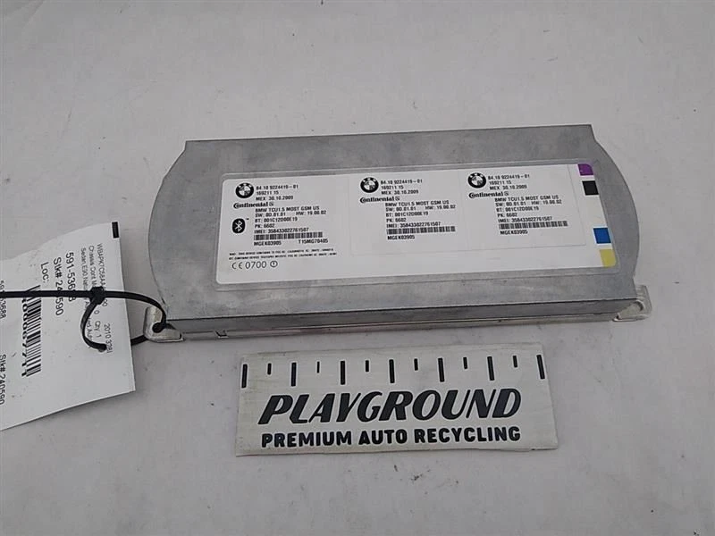 Welcome to Playground - Premium Auto Recycling Feedback [ Add to Favorite Seller me Our eBay STORE New Arrivals All Items Contact Us Most ITEMS SHIPPED WITHIN 2 Business Days Trusted Store customer service is our top priority Product information BMW 328i E90 Sedan Bluetooth Telematics Control Module Fits 2007-2011 Review photos this is your actual part Donor Vehicle: Model: 328I Year: 2010 Miles: 117000 - 0=N/A or Unknown Stock #: 240590 Video: Go to YouTube and search for: "Playground PAR 240590" Part Detail: Part Placement: Options/Color: Sedan,E90,Naturally Aspirated,Auto,A Description: Bluetooth Telematics Control Module 8410922441901 Inventory ID: 67711 Description Bluetooth Telematics Control Module 8410922441901 This part will fit these makes and models with these options BMW 328i 07-10 Communication; telematics control unit (phone) BMW 535i 08 Communication; (telematics control unit, phone), from 3/08 BMW 535i 09-11 Communication; telematics control unit (phone) BMW 750i 09-10 Communication; telematics combox (LH trunk) BMW 760i 10 Communication; telematics combox (LH trunk) BMW X5 08 Communication; (telematics control unit, phone), from 3/08 BMW X5 09-10 Communication; (telematics control unit, phone) BMW X5M 10-13 Communication; (telematics control unit, phone) BMW X6 08 Communication; (telematics control unit, phone), from 3/08 BMW X6 09-11 Communication; (telematics control unit, phone) BMW X6M 10-14 Communication; (telematics control unit, phone) BMW Z4 09-16 Communication; (Rdstr), (telematics control unit, phone) Shipping Playground PAR, LLC ships to US addresses within the continental 48 states. Shipping to Alaska, Hawaii, Puerto Rico, APO, FPO or PO Box addresses and International is available for select parts only. Please contact us through eBay messaging for details and shipping rates for other items. Local Pick-up at our facilities is available. Please contact us prior to your purchase to arrange local pick-up. Please allow up to 10 days for delivery unless your part is included in eBay's Guaranteed Delivery Program. Most areas in the US are within 5 days. If an item arrives damaged, please contact us via eBay messaging within 24 hours for assistance. Warranty Return Policy All parts we sell come with a 3 0 Day Money Back Guarantee unless otherwise stated. The 30 day period starts when the item is delivered. Please contact us through eBay messaging for a Return Merchandise Authorization Number (RMA) before returning any part. We do not cover the cost of labor charges during the installation of your parts. All original shipping costs are non-refundable. Parts must be returned in the same condition as when you received the part. Buyer is responsible for all return shipping costs. Please use the Contact Seller feature if you have questions. Warranty All of our parts (except AS-IS and PARTS ONLY parts) are covered under 60 day warranty. Our warranty policy is below: 60 days starts as of the date of purchase. All requirements of our return policy are part of our warranty policy. This includes the purchaser paying for return shipping. There are no reimbursements for labor, diagnostics, towing, car rental, lost wages, programming or reprogramming. The warranty is for the original purchaser only and is not transferable or assignable. This warranty only covers when parts are used in normal driving conditions and does not cover accidents, abuse, neglect, improper installation, improper maintenance, off-road or use outside of the proper vehicle. Playground may choose to repair, replace or refund the part based on available stock at our discretion. Playground reserves the right to use a repair facility of its choosing to diagnose or perform a warranty claim repair. Parts are not covered for external fluid leaks. We recommend that seals and gaskets be replaced as part of the repair process. Proof of proper lubrication and refilling of components is a requirement for warranty claims. Many electronic modules and components require programming. This process must be followed or the part may not operate correctly, or may be damaged. Proof of programming is required for a warranty claim. Major components are stamped and may have heat sensitive tabs attached to indicated overheating that would void warranty. Warranty covers the base component and none of the other attached parts. We are selling the single part and other parts left attached are there for possible convenience or to protect the part we are selling. These extra attached parts are not covered by any warranty. At no time will the warranty claim ever exceed the original purchase price of the part. Payment Playground PAR, LLC only accepts Ebay Managed Payments for items in our eBay Store. Sales tax will be applied to all orders due to Ebay Policy. Contact Us Please contact us prior to purchasing this part if you have any questions regarding our business policies, the warranties or guaranties we offer or the fitment of this part with your vehicle. Want better photos? Contact us, we can get them to you. We strive to make sure your vehicles repair needs are met the first time you order a part through our store on eBay. To do so, we are happy to verify your vehicles VIN number prior to your purchase, please use the Contact Seller feature within the eBay listing. Â Playground PAR, LLC ships to US addresses within the continental 48 states. Shipping to Alaska, Hawaii, Puerto Rico, APO, FPO or PO Box addresses and International is available for select parts only. Please contact us through eBay messaging for details and shipping rates for other items. Local Pick-up at our facilities is available. Please contact us prior to your purchase to arrange local pick-up. Please allow up to 10 days for delivery unless your part is included in eBay's Guaranteed Delivery Program. Most areas in the US are within 5 days. If an item arrives damaged, please contact us via eBay messaging within 24 hours for assistance. Return Policy All parts we sell c