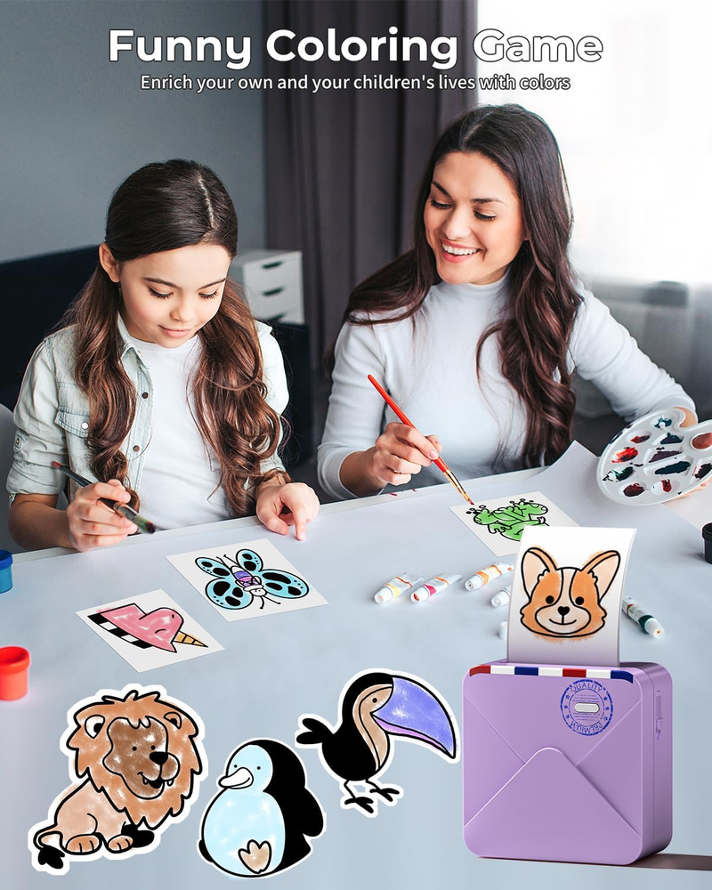 This mini printer is a game-changer! Super compact yet powerful, it prints crisp 300 DPI photos and notes wirelessly from my phone. The Bluetooth connection is flawless, and the thermal printing saves so much on ink. Perfect for organizing study notes, creating cute stickers, or printing memories on the go. Works seamlessly with both iOS and Android—love how portable and easy it is to use! Makes a fantastic gift too. Highly recommend!