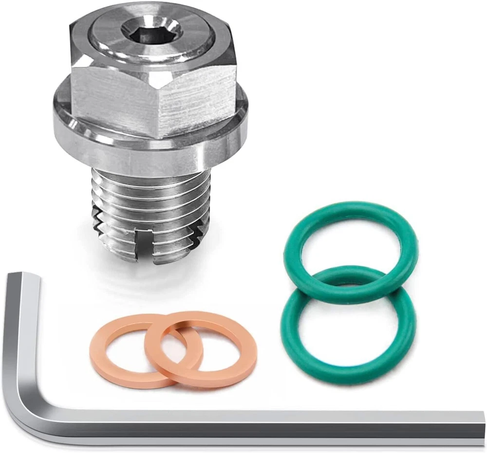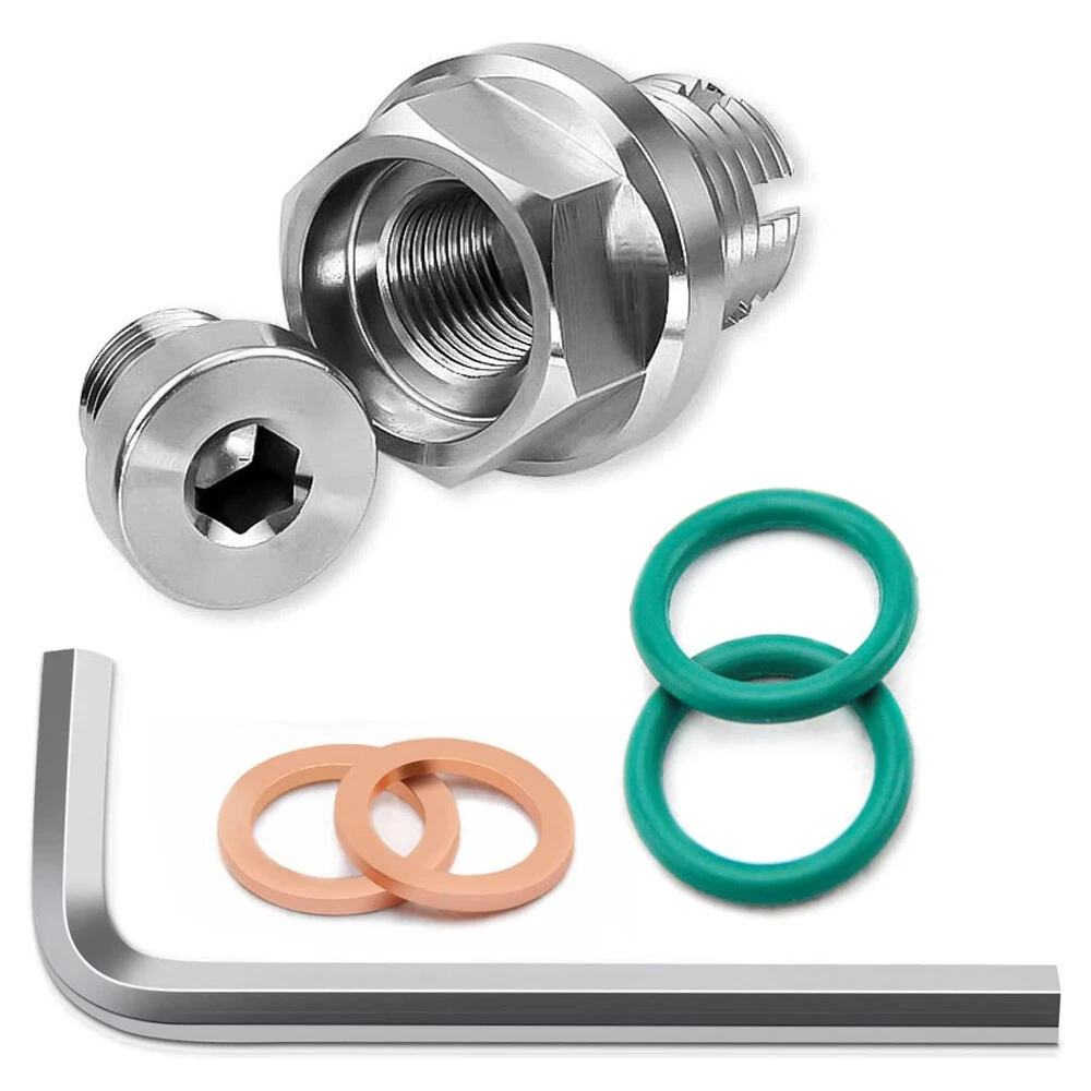 M18 1-1.5x15mm Oil Drain Plug Self-tapping Piggyback Stainless Steel Repair Kit Item Description Oversized, piggyback oil drain plug, made of stainless steel 304 with CNC cutting technology, have enough hardness and precision to re-thread the oil pan. Cost-effective solution, simple installation, eliminate the need to replace the entire pan, saving you time, labor and money. This oversized, piggyback engine oil drain plug matches the fit and function of the original drain plug, and has undergone try-on testing to ensure a quality seal. Ideal replacement - There are several kinds of thread repair tools in the market like Heli-Coil, Time-Sert, or self-tapping bolt and drain plug repair kit. Using these tools to repair oil pan thread is risky and challenge, because you need to be very carefully to align the tap perpendicular to the oil pan before cut the new threads. Or it will leak oil. Using our piggyback oil drain plug to repair your slipped oil pan thread, just a few simple steps to get the job done. Quality Assurance- 100% inspection before shipment to ensure that there are no quality problems, please check according to our pictures and information to match your model.If you have any questions during the trial period, please feel free to contact us and we will try our best to help you out. Features Six Thread Cut Design: The six thread cut design of oil drain plug's 304 Thread Cut is very sharp and solid. The copper gasket is made of high-quality pure copper. Save time and money: Cost-effective solution, simple installation.This stainless steel self-tapping oil pan thread repair kit can help you eliminate the need to replace the entire pan. Specifications Condition:100% Brand New Warranty: 90 Day Material: Aluminum Pitch: M18.1-1.5x15mm Color:Silve Installation Method Clean the oil pan before installation to ensure that the area and threads are free of excess oil and impurities. Thread the piggyback plug into the hole, forward a few turns, then back a few turns. After the plug bottoms out, remove it, then clean up the iron chips around the punch hole Using a T-socket wrench, torque the plug to approximately 14ft-lbf. After installing the piggyback plug, screw in the small piggyback oil drain plug, and the installation is complete (Note: When removing the small oil drain plug, please ensure that the large piggyback plug is in a fixed state) Package Included 1pc Main Plug 1pc Piggyback Oil Drain Plug 1pc L Shaped Hex Wrench 2pcs Fluorine O Ring 2pcs Copper Tone Gasket As pictures show FAQ: I purchased by mistake, how do I cancel the order? Please contact us ASAP. If the item has not been shipped out we can cancel the order for you. If the item was shipped out you can refuse the package and wait for the item to return to us. I received your item but it does not fit or is defective Please contact us so we can assist you on the matter. Buy with confidence Our quality is based on meeting the requirements of the manufacturer and improvement them in design problems manufacture. NOTE: (1)It would be highly appreciated if you might contact us first once you have any problems concerning the items. And you can expect all the issues would be resolved ASAP! (2)Please let us know before you send us the neutral/negative feedback that wont help to finish the issues. And I will definitely try my best to provide the best solutions which would meet our satisfactory! (3)According to the distance of the receipt address items would be sent from CA or NJ