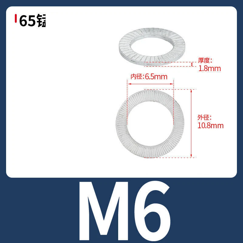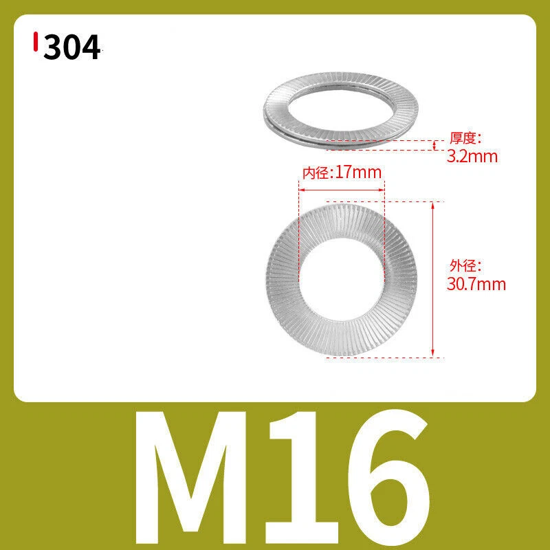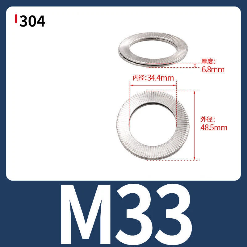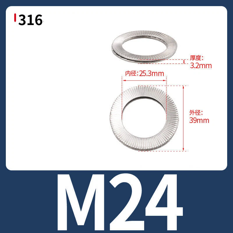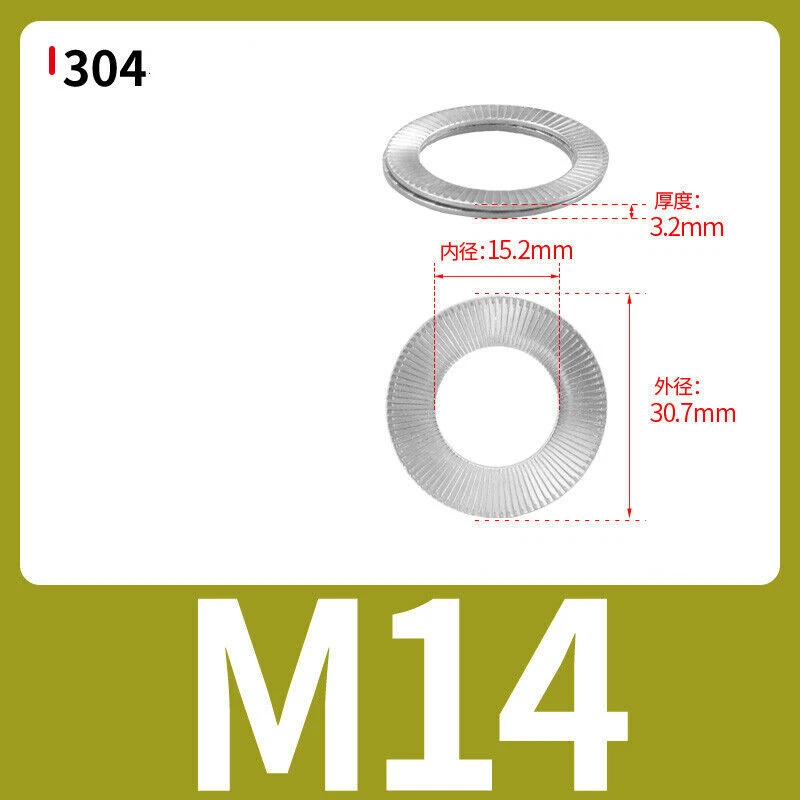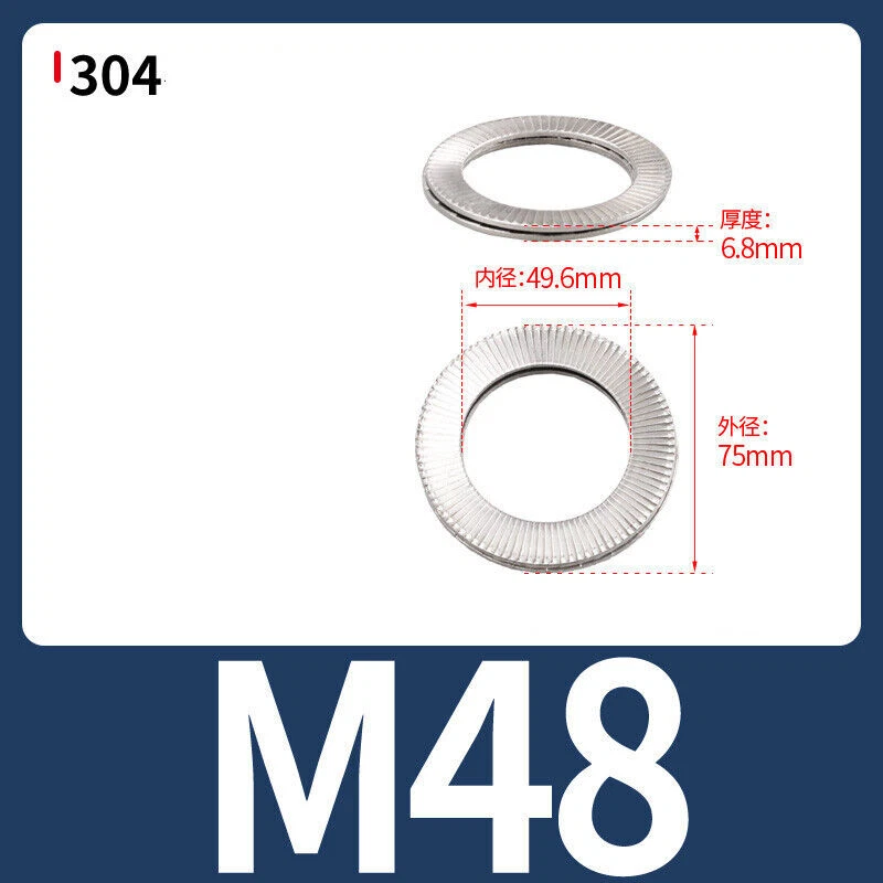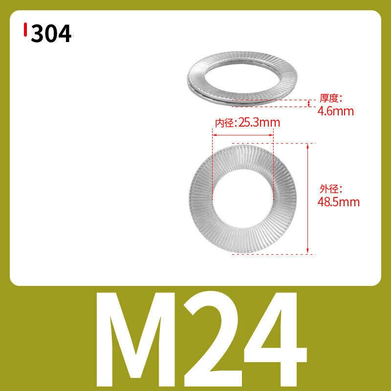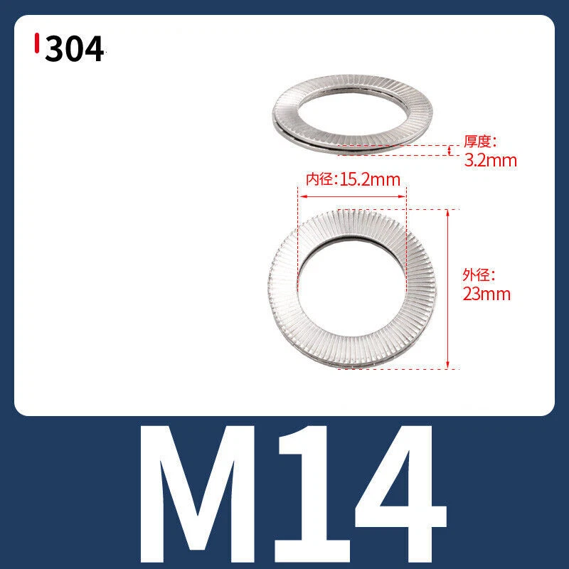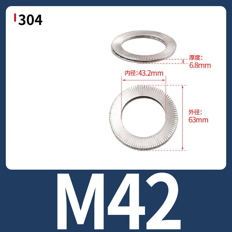 DIN25201 Lock Washers Wedge Locking Washer Type Serrated Disc Gasket M3 to M48 ●Product Properties : Sizes : M3 to M48 Material : Stainless Steel,65 Mn Steel ●Product Features : The products are made of 65 manganese steel 304/316 stainless steel, which has good corrosion resistance, oxidation resistance, heat resistance, high strength and high toughness. ●Use of products : 304/316 stainless steel/65 manganese steel fasteners are widely used in industry, furniture decoration and other industries use a wide range, making it unanimously welcomed by various industries.
