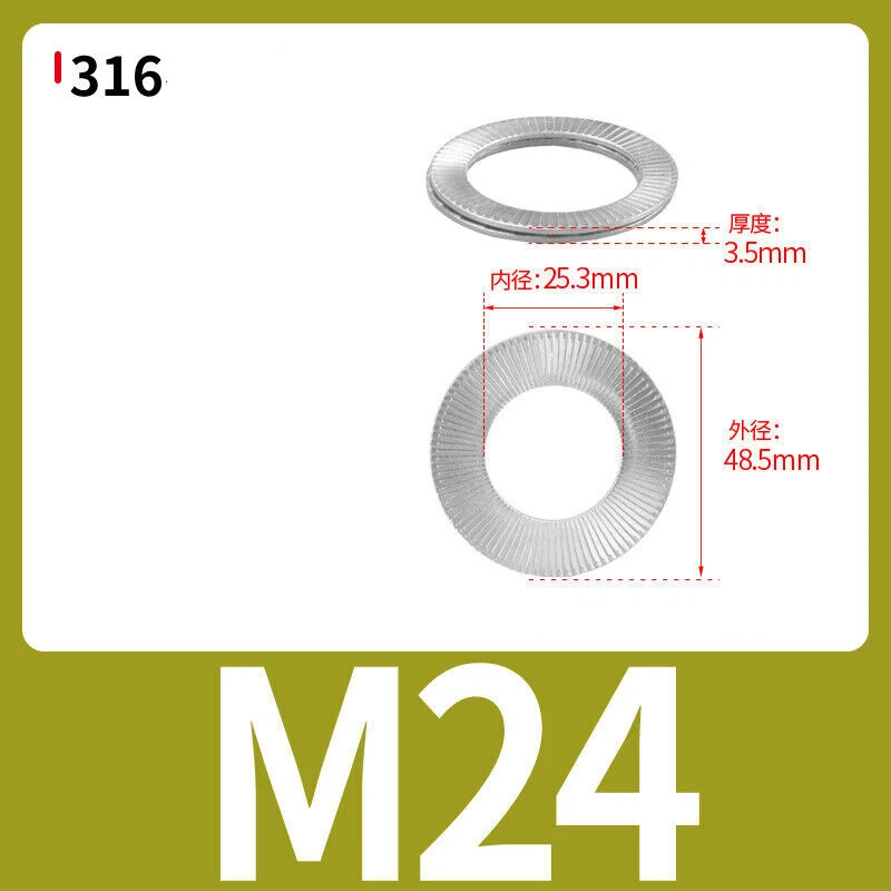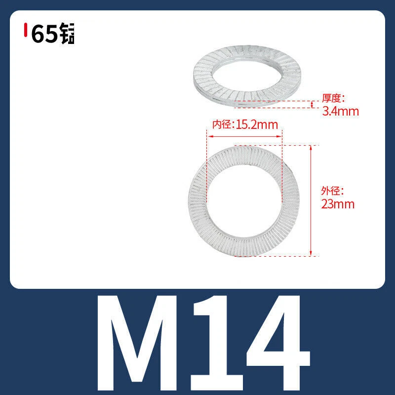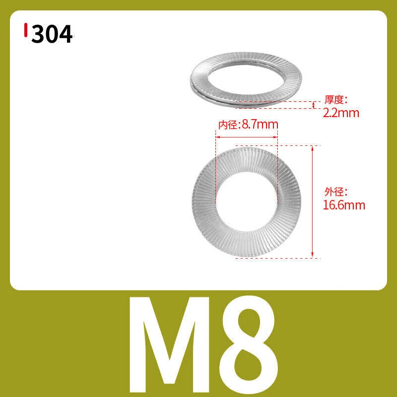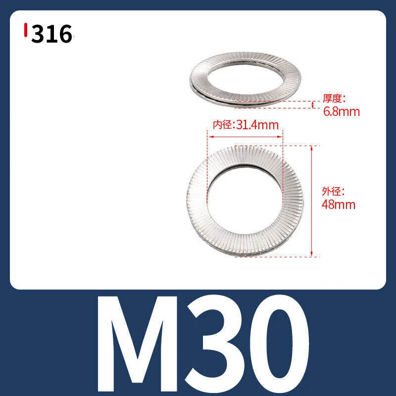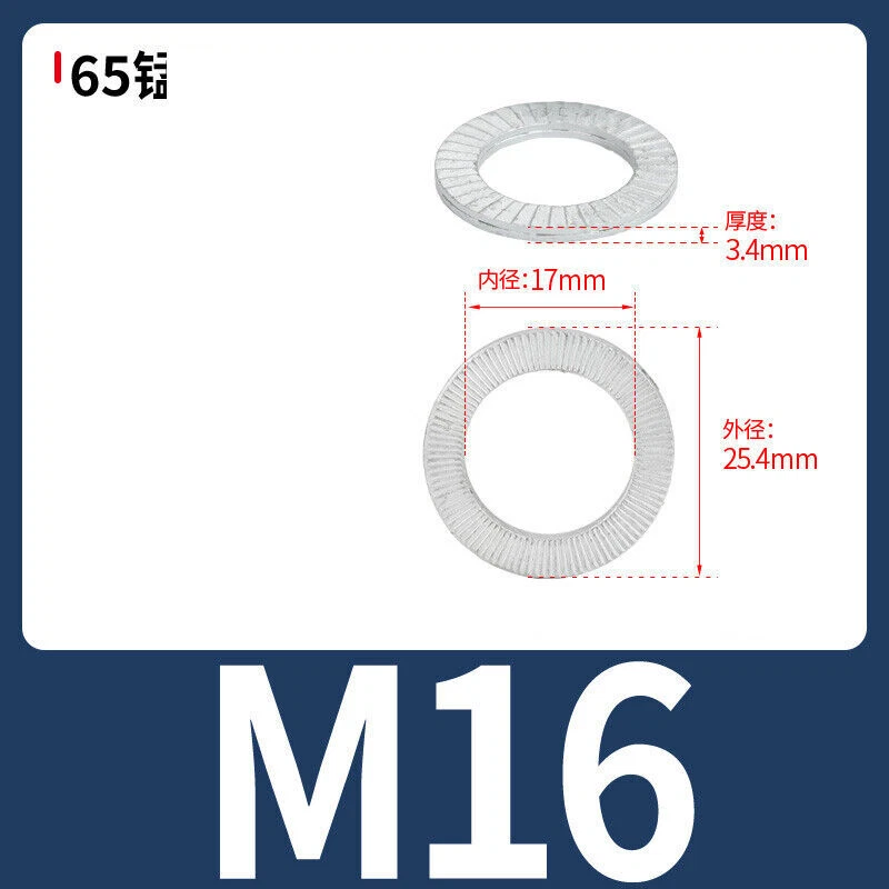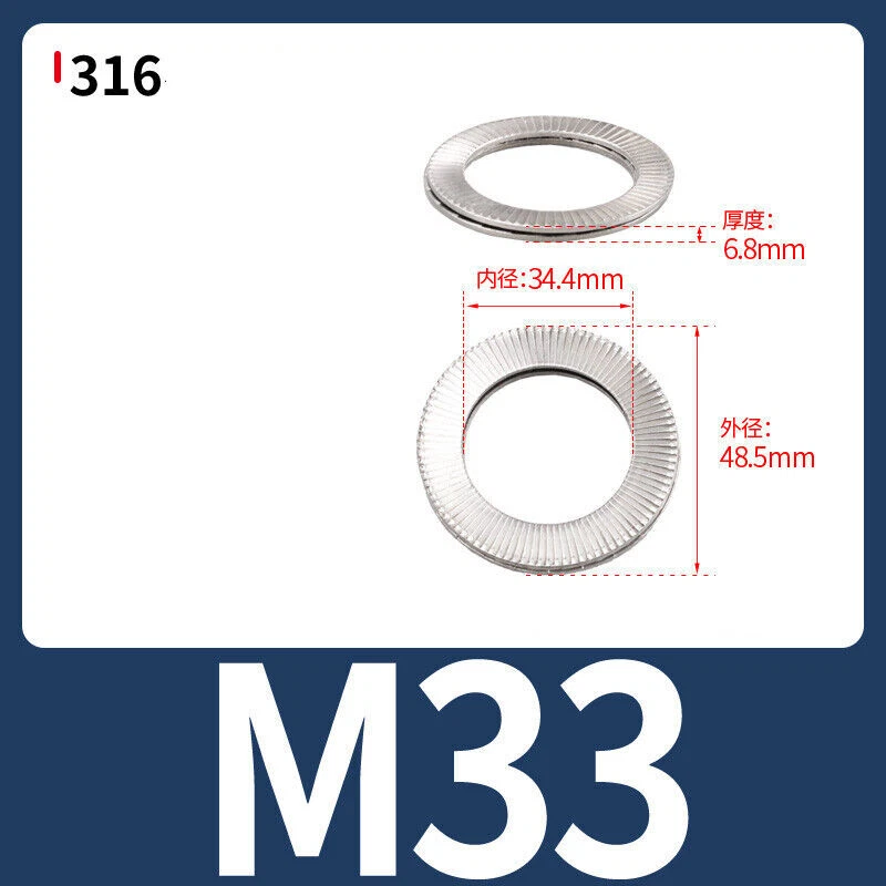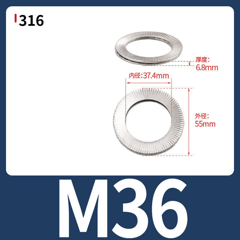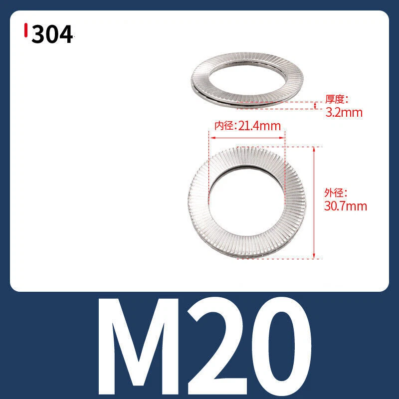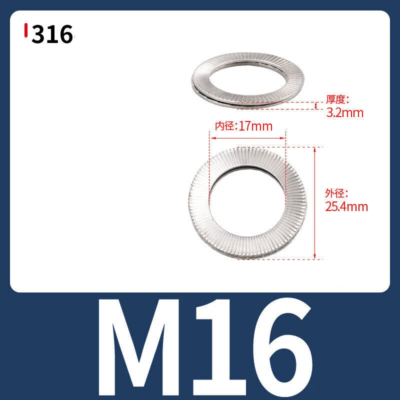 DIN25201 Lock Washers Wedge Locking Washer Type Serrated Disc Gasket M3 to M48 ●Product Properties : Sizes : M3 to M48 Material : Stainless Steel,65 Mn Steel ●Product Features : The products are made of 65 manganese steel 304/316 stainless steel, which has good corrosion resistance, oxidation resistance, heat resistance, high strength and high toughness. ●Use of products : 304/316 stainless steel/65 manganese steel fasteners are widely used in industry, furniture decoration and other industries use a wide range, making it unanimously welcomed by various industries.