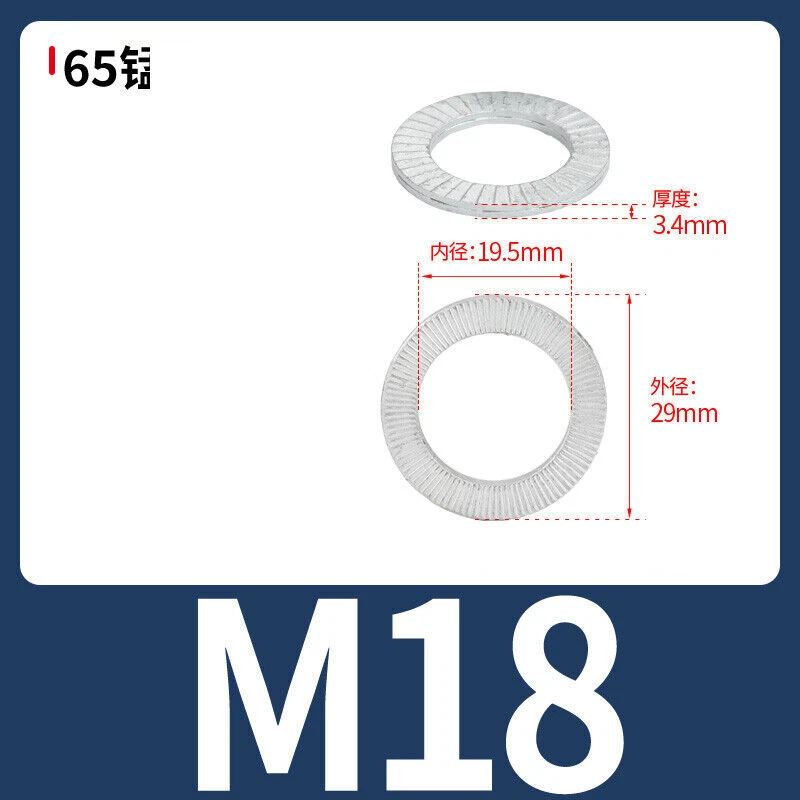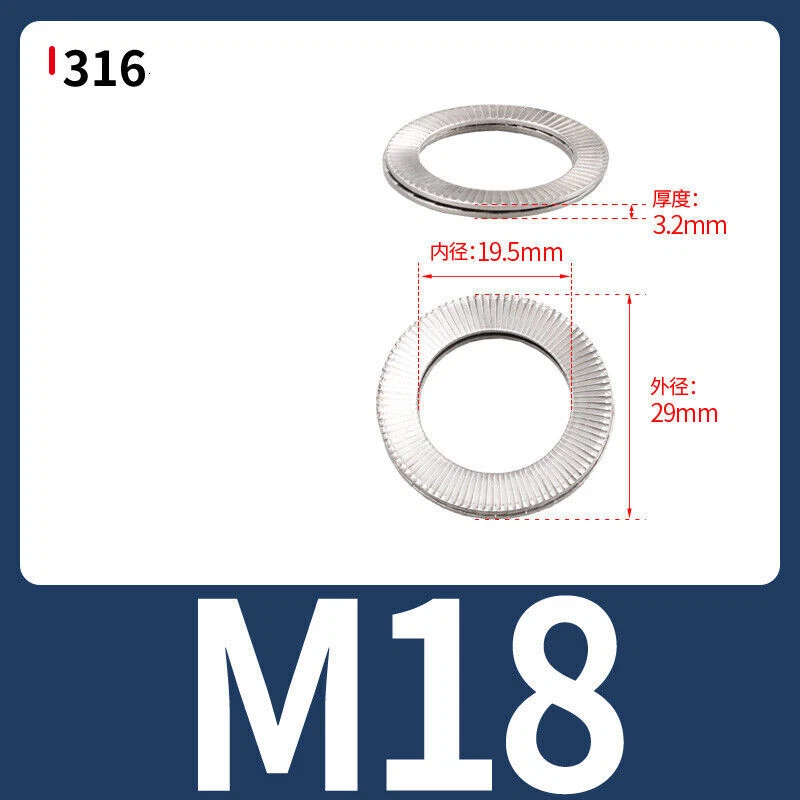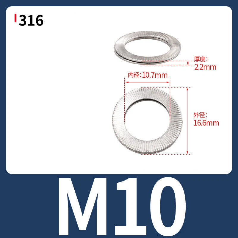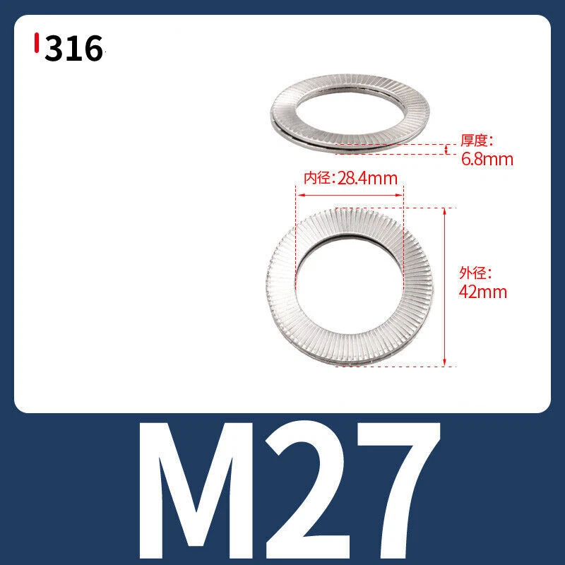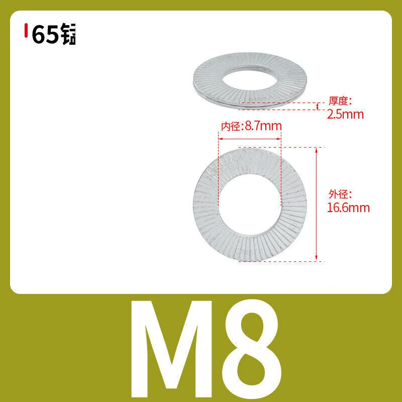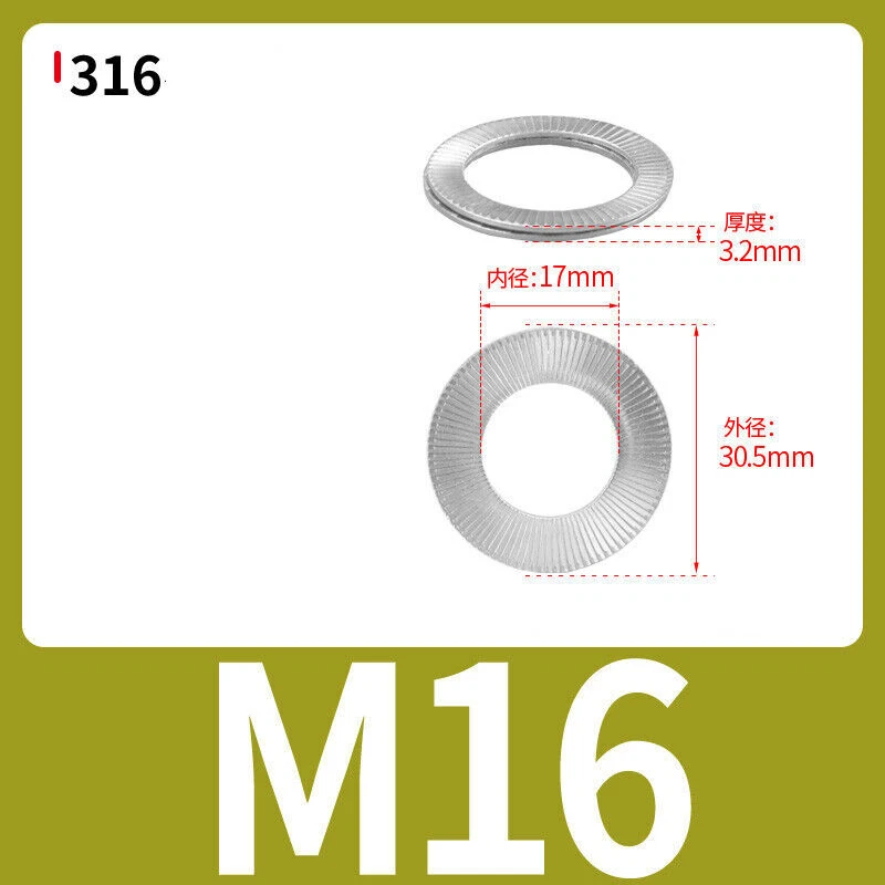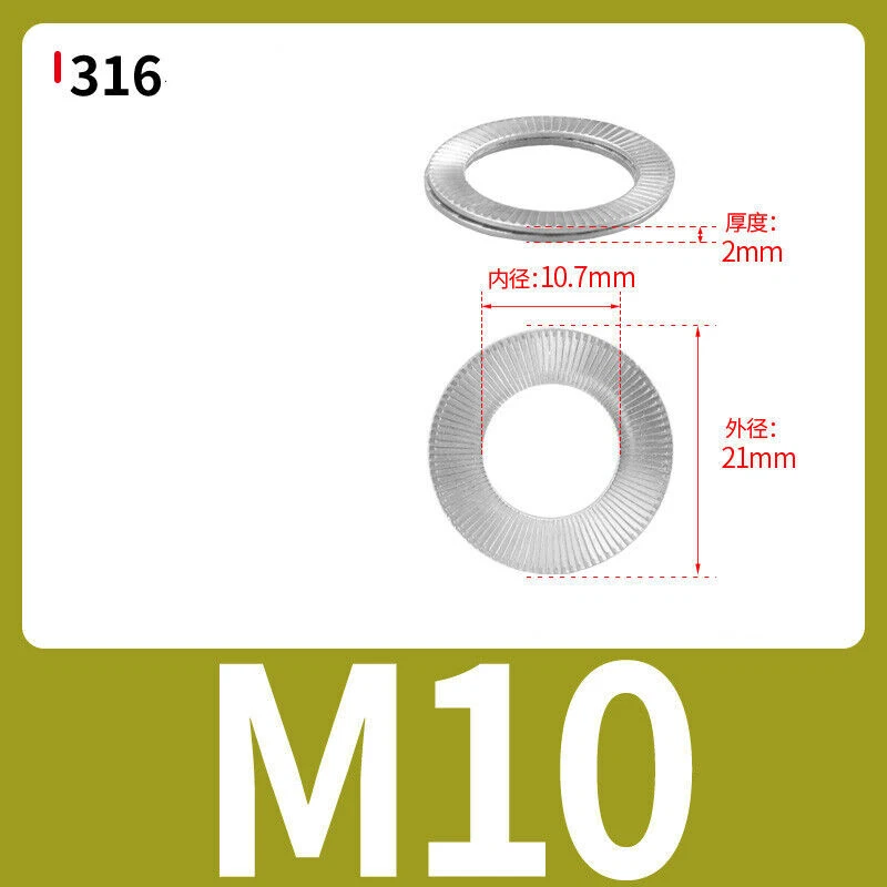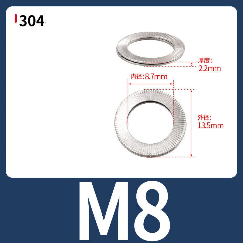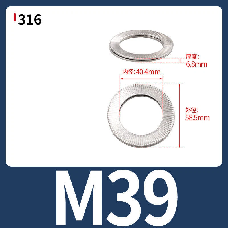 DIN25201 Lock Washers Wedge Locking Washer Type Serrated Disc Gasket M3 to M48 ●Product Properties : Sizes : M3 to M48 Material : Stainless Steel,65 Mn Steel ●Product Features : The products are made of 65 manganese steel 304/316 stainless steel, which has good corrosion resistance, oxidation resistance, heat resistance, high strength and high toughness. ●Use of products : 304/316 stainless steel/65 manganese steel fasteners are widely used in industry, furniture decoration and other industries use a wide range, making it unanimously welcomed by various industries.