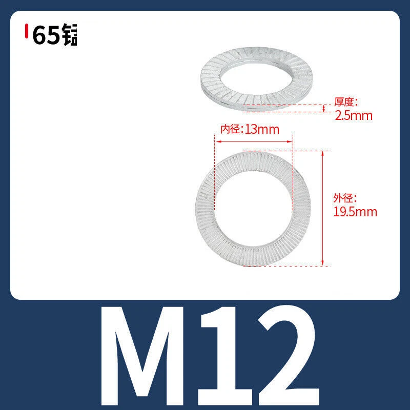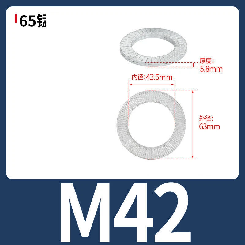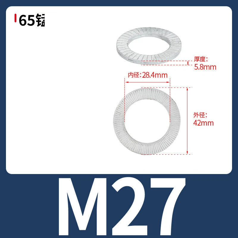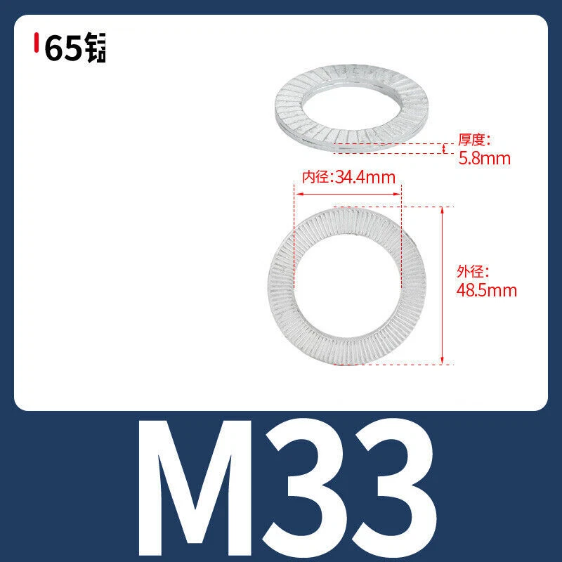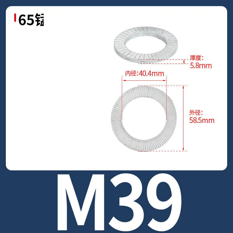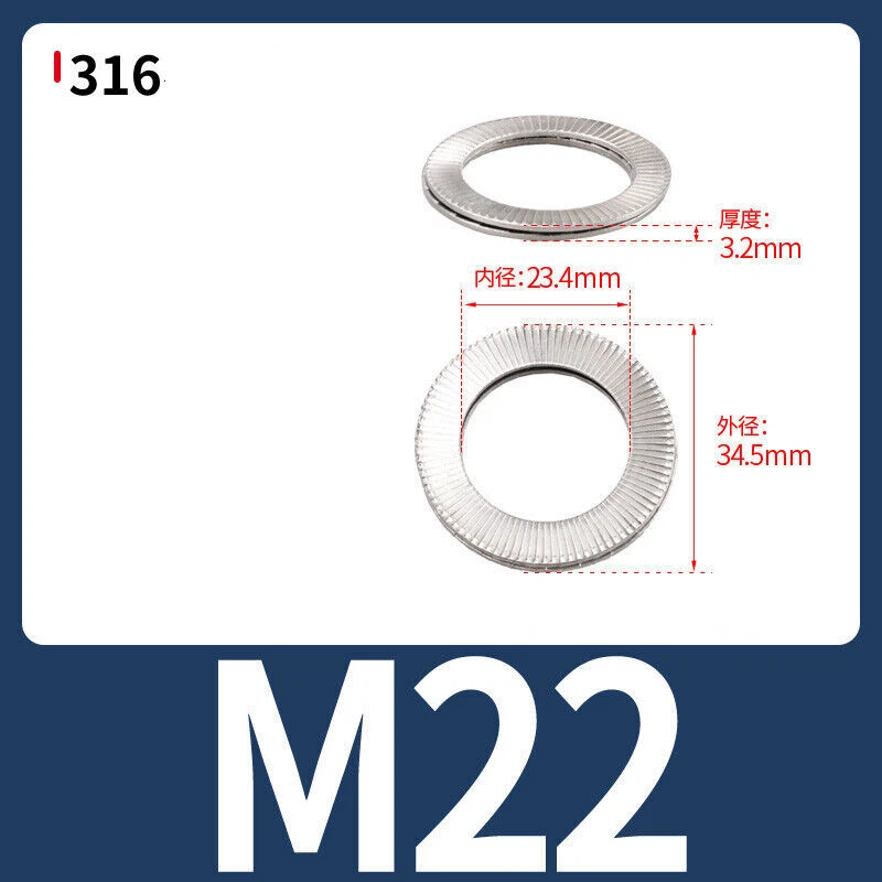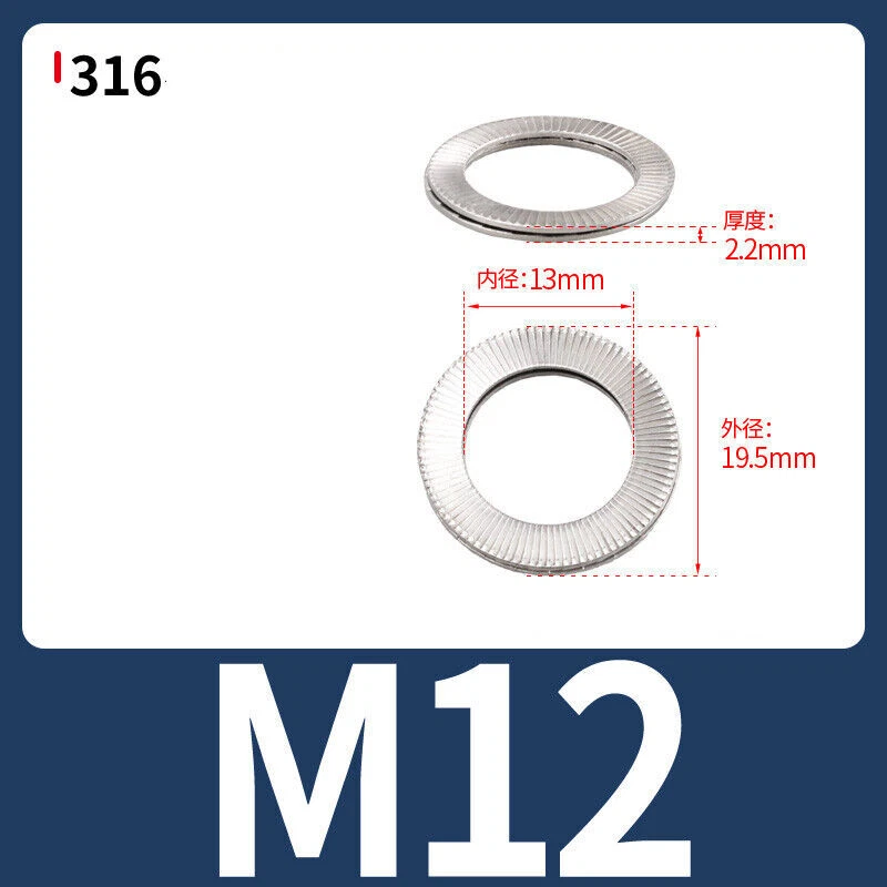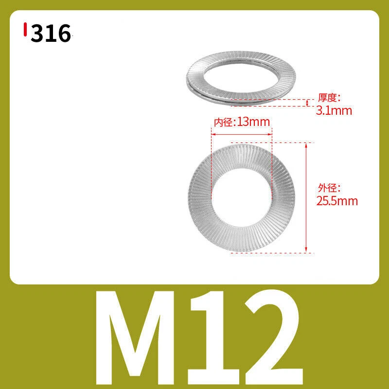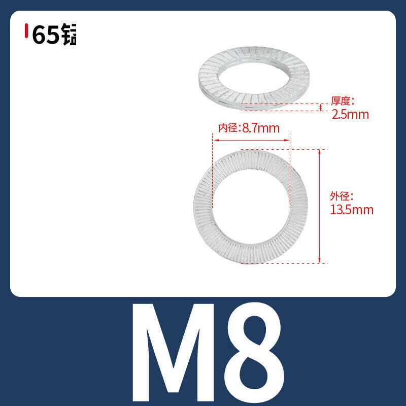 DIN25201 Lock Washers Wedge Locking Washer Type Serrated Disc Gasket M3 to M48 ●Product Properties : Sizes : M3 to M48 Material : Stainless Steel,65 Mn Steel ●Product Features : The products are made of 65 manganese steel 304/316 stainless steel, which has good corrosion resistance, oxidation resistance, heat resistance, high strength and high toughness. ●Use of products : 304/316 stainless steel/65 manganese steel fasteners are widely used in industry, furniture decoration and other industries use a wide range, making it unanimously welcomed by various industries.