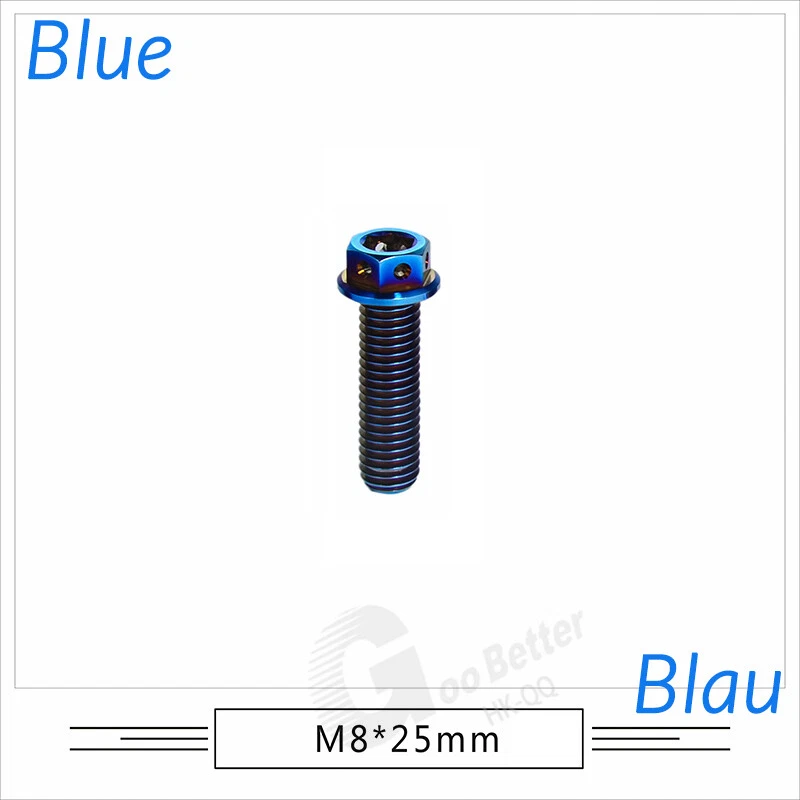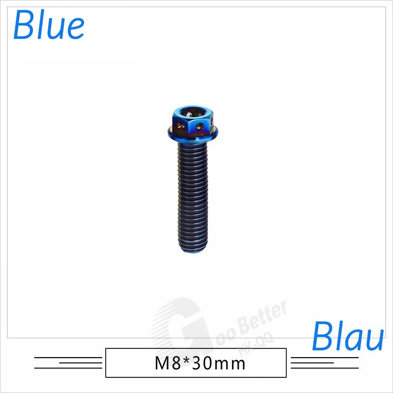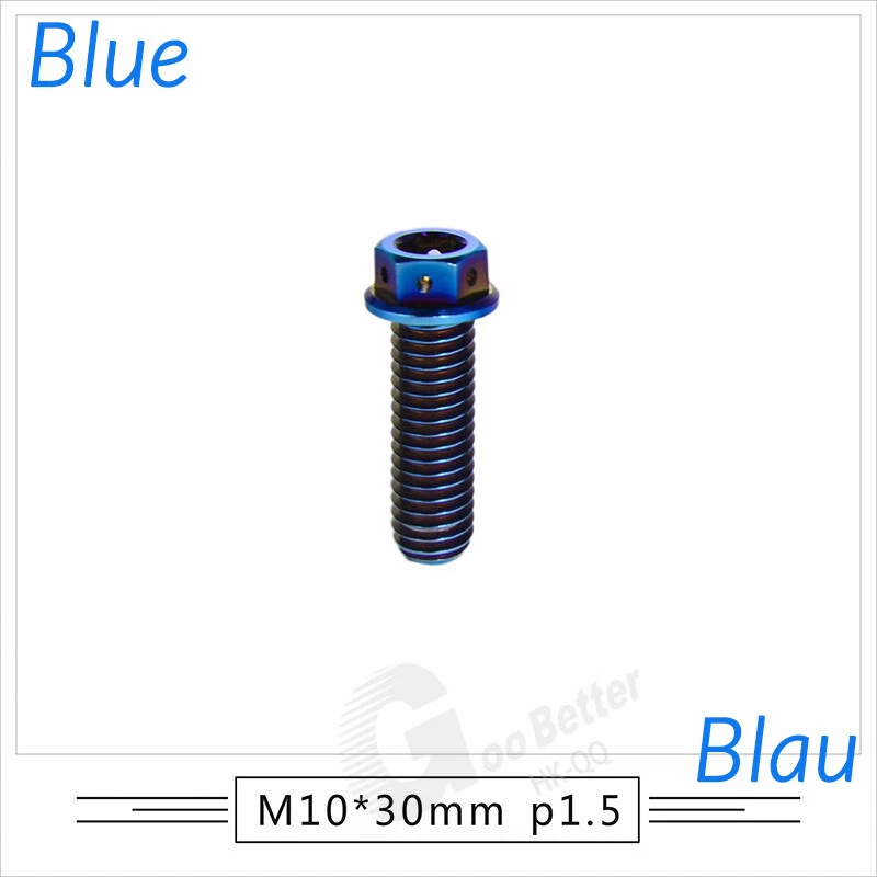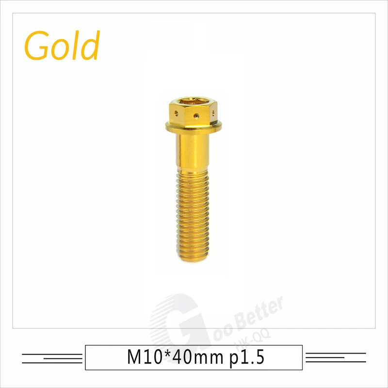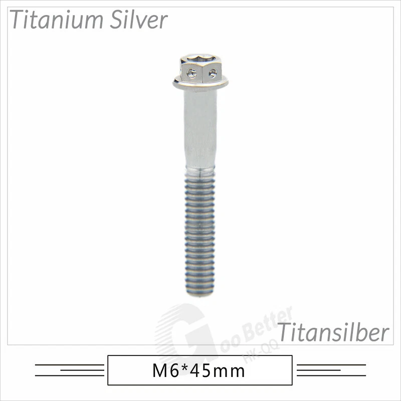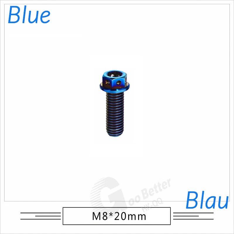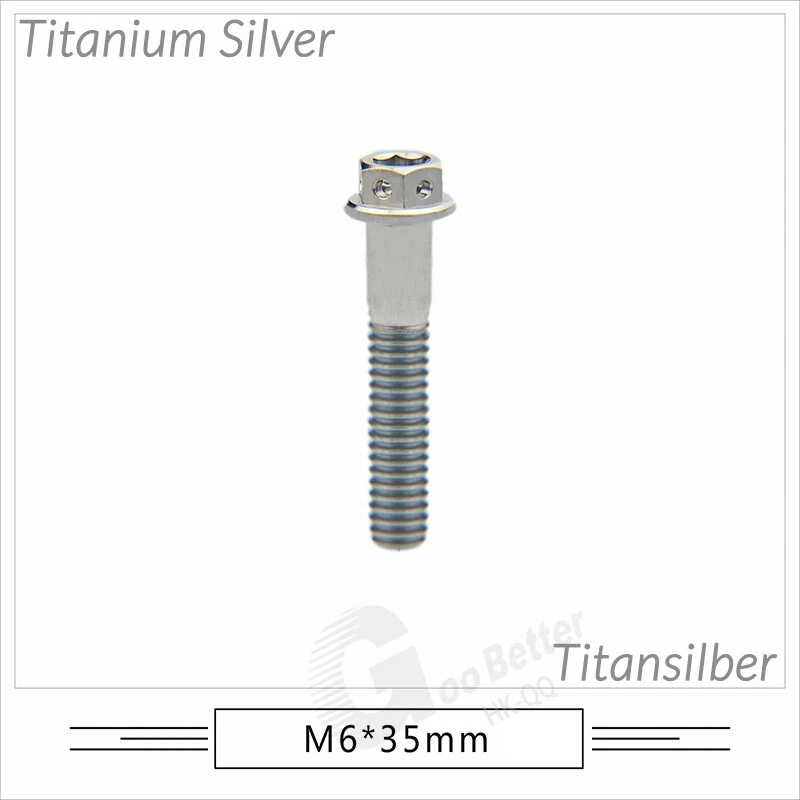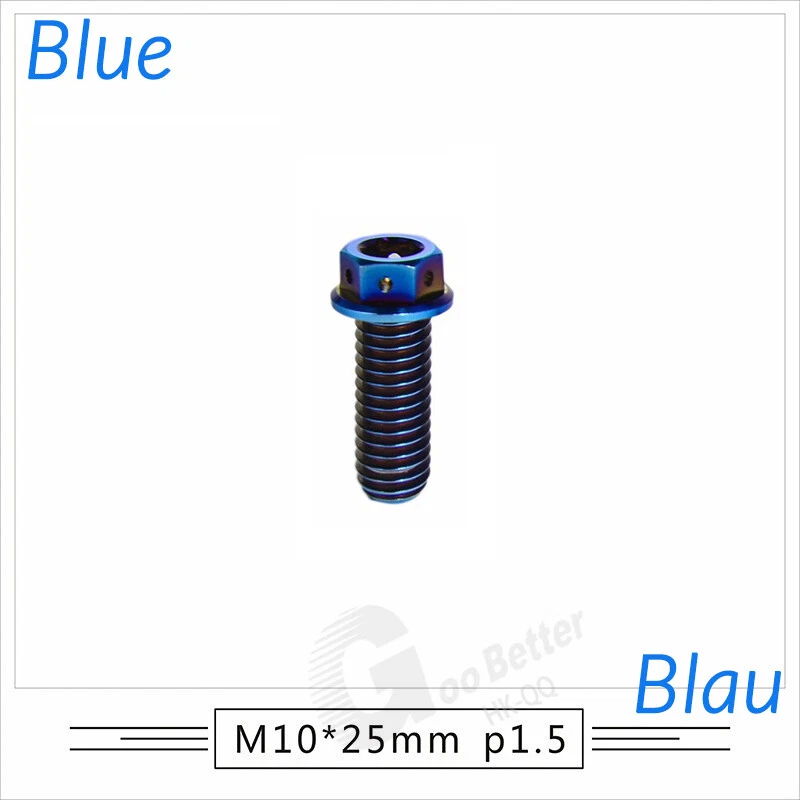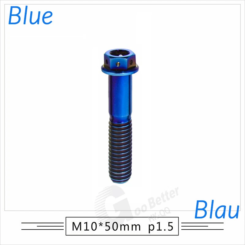 M6 M8 M10 Titanium Bolt Anodized Color Hex Flange Head 10,15,20,25,30,35,40-90mm We use high standard TC4 titanium alloy raw materials from aerospace grade titanium suppliers, rejecting inferior materials with secondary melting or no quality guarantee. Each batch of raw materials undergoes strict metal flaw detection to control quality from the source and ensure product quality to the greatest extent possible. Ultra lightweight: Titanium alloy screws are overall lightweight, with a density of only 55.7% of steel and a weight almost half that of steel! High strength: Titanium alloy screws are lightweight, but have high strength and hardness. The measured hardness is HRC34-38. While reducing weight, the strength and safety are still guaranteed. Titanium, like steel, also has an inherent flexibility, but this characteristic of titanium is more pronounced. The superior performance of this emerging material makes it a material for bicycle manufacturing. Super anti-corrosion: Its service life is longer than that of other metals. No matter in heavy rain, mud or rainstorm, a little wiping will immediately show metallic luster. Thank you for browsing our products ♥