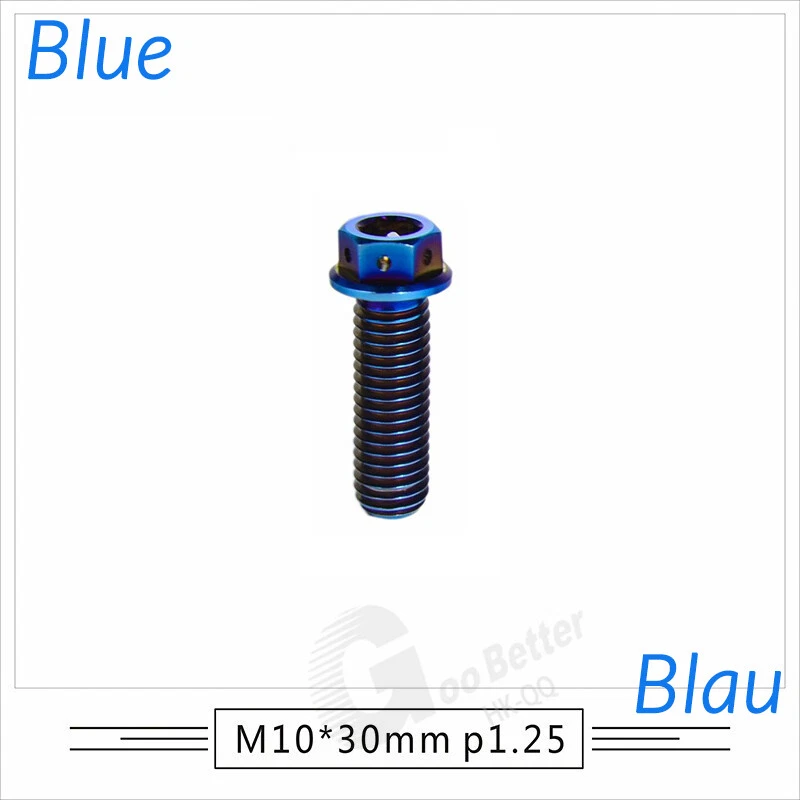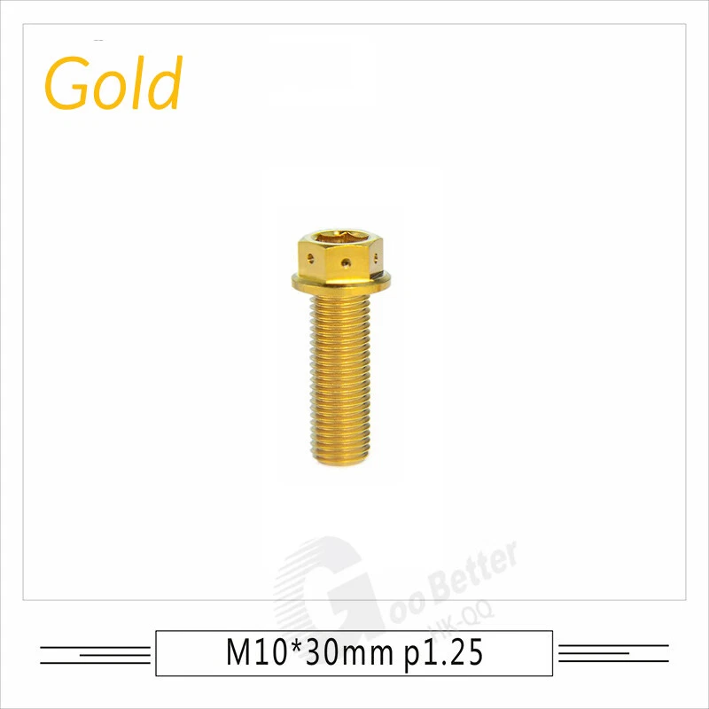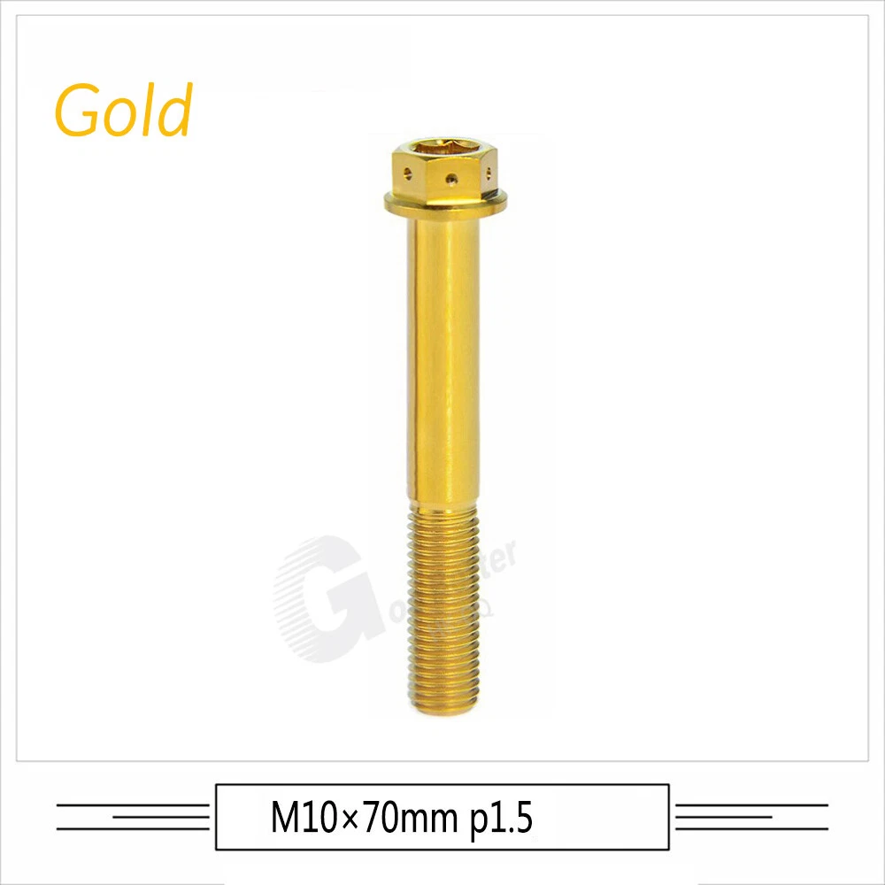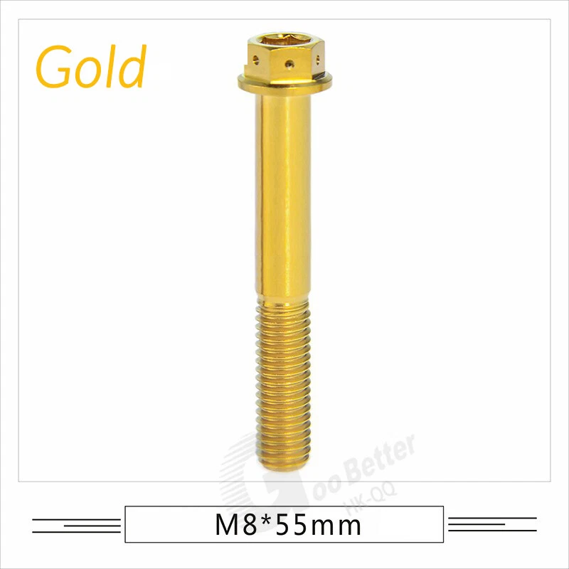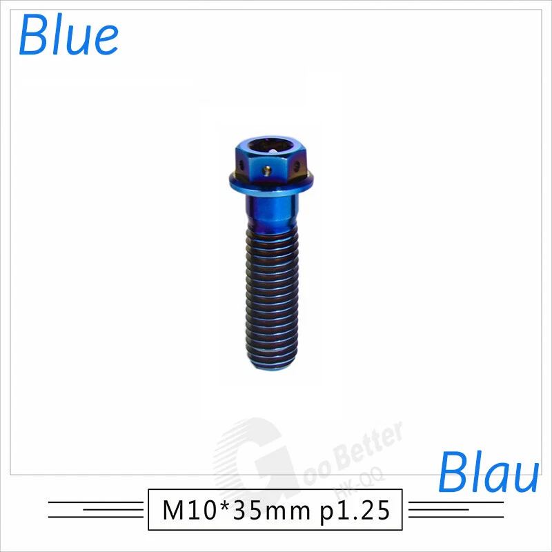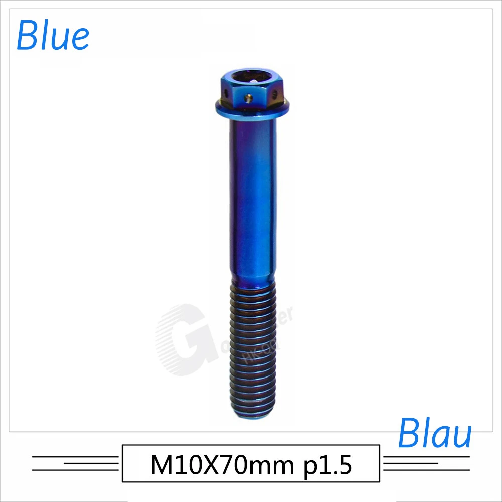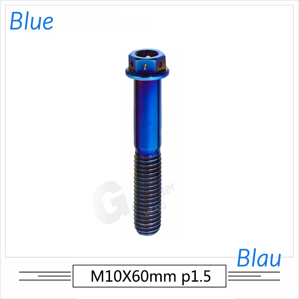 M6 M8 M10 Titanium Bolt Anodized Color Hex Flange Head 10,15,20,25,30,35,40-90mm We use high standard TC4 titanium alloy raw materials from aerospace grade titanium suppliers, rejecting inferior materials with secondary melting or no quality guarantee. Each batch of raw materials undergoes strict metal flaw detection to control quality from the source and ensure product quality to the greatest extent possible. Ultra lightweight: Titanium alloy screws are overall lightweight, with a density of only 55.7% of steel and a weight almost half that of steel! High strength: Titanium alloy screws are lightweight, but have high strength and hardness. The measured hardness is HRC34-38. While reducing weight, the strength and safety are still guaranteed. Titanium, like steel, also has an inherent flexibility, but this characteristic of titanium is more pronounced. The superior performance of this emerging material makes it a material for bicycle manufacturing. Super anti-corrosion: Its service life is longer than that of other metals. No matter in heavy rain, mud or rainstorm, a little wiping will immediately show metallic luster. Thank you for browsing our products ♥