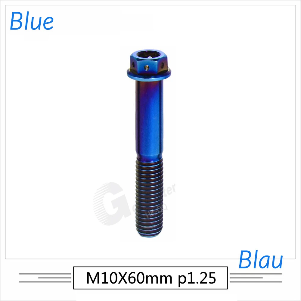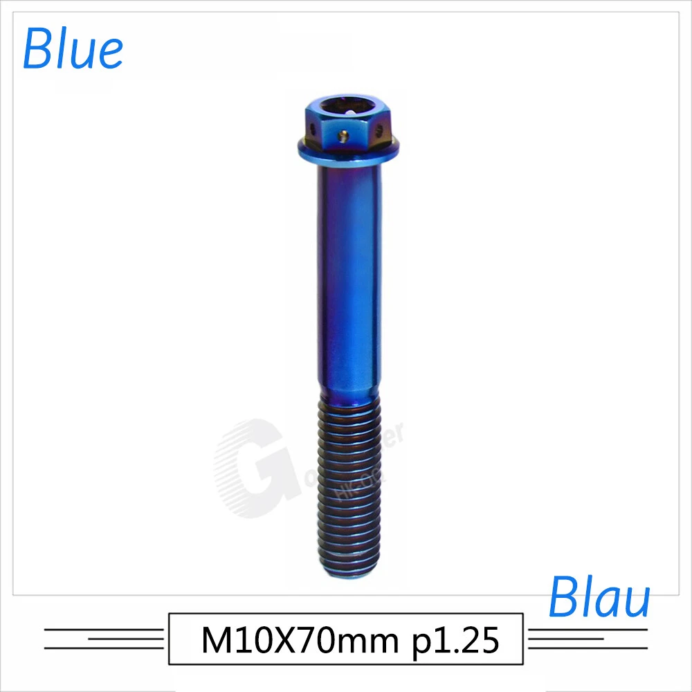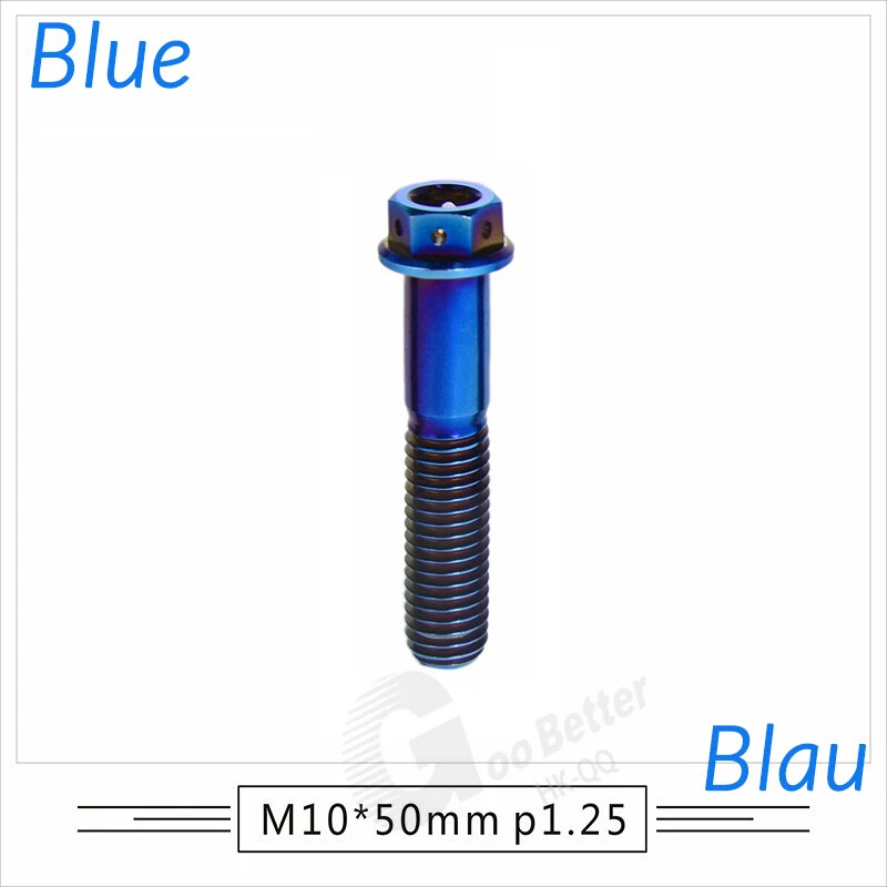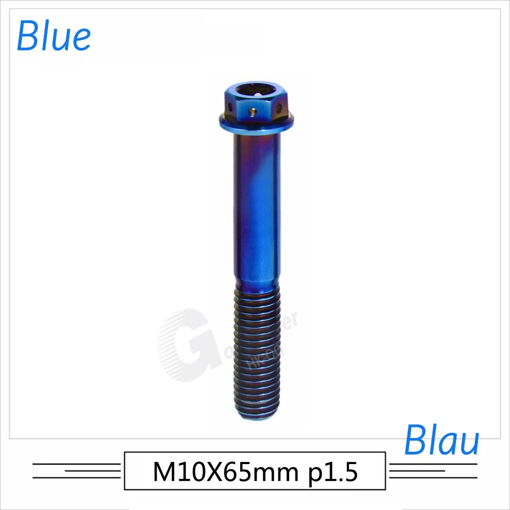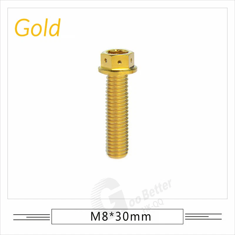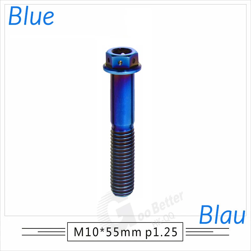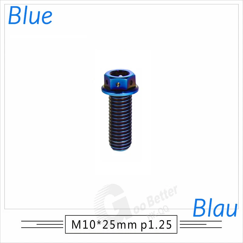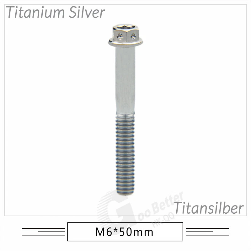 M6 M8 M10 Titanium Bolt Anodized Color Hex Flange Head 10,15,20,25,30,35,40-90mm We use high standard TC4 titanium alloy raw materials from aerospace grade titanium suppliers, rejecting inferior materials with secondary melting or no quality guarantee. Each batch of raw materials undergoes strict metal flaw detection to control quality from the source and ensure product quality to the greatest extent possible. Ultra lightweight: Titanium alloy screws are overall lightweight, with a density of only 55.7% of steel and a weight almost half that of steel! High strength: Titanium alloy screws are lightweight, but have high strength and hardness. The measured hardness is HRC34-38. While reducing weight, the strength and safety are still guaranteed. Titanium, like steel, also has an inherent flexibility, but this characteristic of titanium is more pronounced. The superior performance of this emerging material makes it a material for bicycle manufacturing. Super anti-corrosion: Its service life is longer than that of other metals. No matter in heavy rain, mud or rainstorm, a little wiping will immediately show metallic luster. Thank you for browsing our products ♥