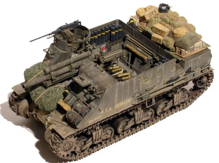 With the modern battlefield demanding mobility, the M7 Priest provided the British Army with an effective fully armored self-propelled artillery vehicle, based on the chassis of the M3 Lee tank. Supplied via the Lend-Lease agreement, these vehicles initially used US and ammunition, which did create some logistics problems for its British operators. The M7 was christened Priest by the British Army, due to the defensive machine position resembling a church pulpit. Classic 1:35 Armor model scaled tank. Includes some interior details and includes both band tracks and Link and length tracks. Skill level: 3. A great plastic model kit for the intermediate to experienced modeler. Primary Scheme: Howitzer Motor Carriage M7 Priest C Battery, 78th Field Artillery Battalion, 2nd Armored Division, US 7th Army, Germany 1945. Secondary Scheme: Howitzer Motor Carriage M7 Priest A Troop, 22nd Battery, 24th Field Regiment, Royal Artillery, Italy 1944. Painting and assembly required. Paints and glue need to be purchased separately. Humbrol paints needed to complete the tank liveries are listed on the outside of the box.