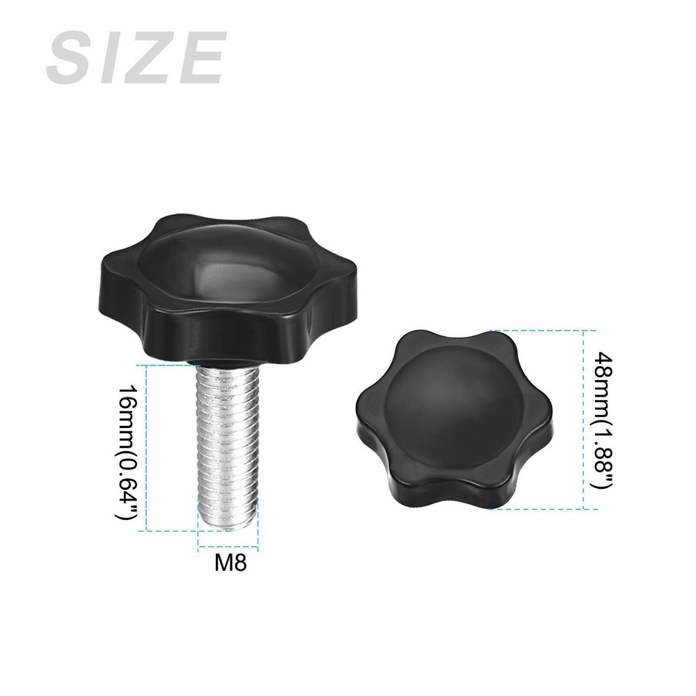 Document APPLY TO - Can be used in housing construction, furniture repair, lathe machine, clamp, fence, mechanical equipment, instrument and industrial equipment.SPECIFICATION:Material: Metal, PlasticHead Dia: 48mm/1.88"Thread Size: M8x16mm (D*L)Total Height: 44mm/1.74''QUANTITY INCLUDED - 1pcs x Clamping Handle Screw KnobADVANTAGE - Made of metal material, it has good hardness and can be fastened for a long time. Star-shape plastic knob, it is non-slip and not easy to break.Note: Please confirm the thread size of the clamping handle screw knobs before purchasing. 1Pcs M8x16mm Clamping Handle Screw Knobs Metal Crank Tapered Grip APPLY TO - Can be used in housing construction, furniture repair, lathe machine, clamp, fence, mechanical equipment, instrument and industrial equipment. SPECIFICATION: Material: Metal, Plastic Head Dia: 48mm/1.88" Thread Size: M8x16mm (D*L) Total Height: 44mm/1.74'' QUANTITY INCLUDED - 1pcs x Clamping Handle Screw Knob ADVANTAGE - Made of metal material, it has good hardness and can be fastened for a long time. Star-shape plastic knob, it is non-slip and not easy to break. Note: Please confirm the thread size of the clamping handle screw knobs before purchasing. Hot Item Payment 1.We accept eBay payment . 2.Payment must be received within 7 business days of auction closing. Shipping 1.We ship to your eBay or Paypal address. Please make sure your eBay and Paypal address is correct before you pay. 2.Items will be shipped within 1-3 business day when we received payment. 3.Delivery time depends on destination and other factors. Description Policy 1Pcs M8x16mm Clamping Handle Screw Knobs Metal Crank Tapered Grip APPLY TO - Can be used in housing construction, furniture repair, lathe machine, clamp, fence, mechanical equipment, instrument and industrial equipment. SPECIFICATION: Material: Metal, Plastic Head Dia: 48mm/1.88" Thread Size: M8x16mm (D*L) Total Height: 44mm/1.74'' QUANTITY INCLUDED - 1pcs x Clamping Handle Screw Knob ADVANTAGE - Made of metal material, it has good hardness and can be fastened for a long time. Star-shape plastic knob, it is non-slip and not easy to break. Note: Please confirm the thread size of the clamping handle screw knobs before purchasing. Hot Item Payment 1.We accept eBay payment . 2.Payment must be received within 7 business days of auction closing. Shipping 1.We ship to your eBay or Paypal address. Please make sure your eBay and Paypal address is correct before you pay. 2.Items will be shipped within 1-3 business day when we received payment. 3.Delivery time depends on destination and other factors.