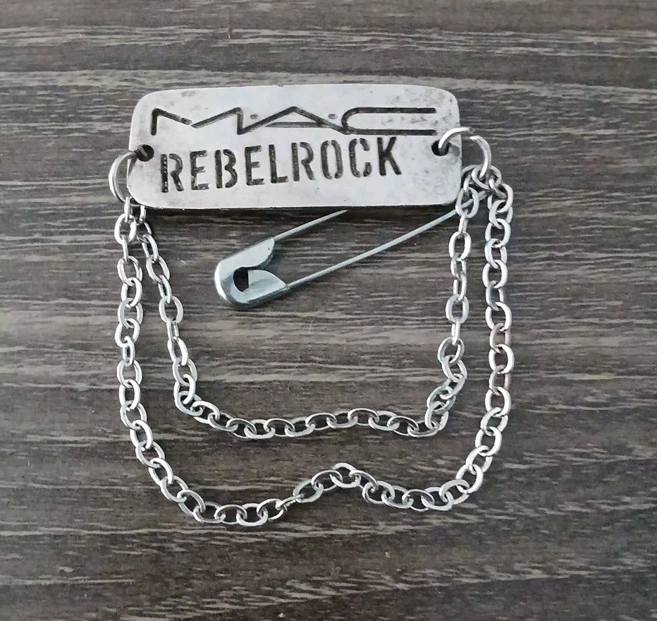 This MAC Cosmetics Employee Pin is a rare vintage piece with an asymmetrical shape in silver steel. It features engraved details and is perfect for an anniversary or birthday gift. The pin embodies the beauty and art themes associated with the MAC brand.