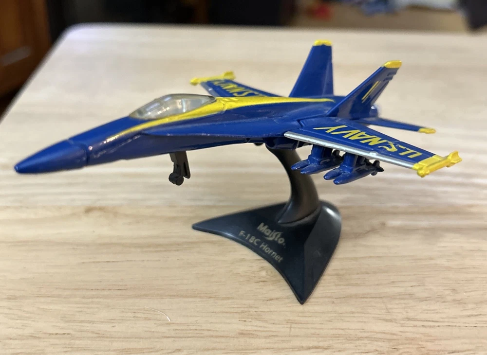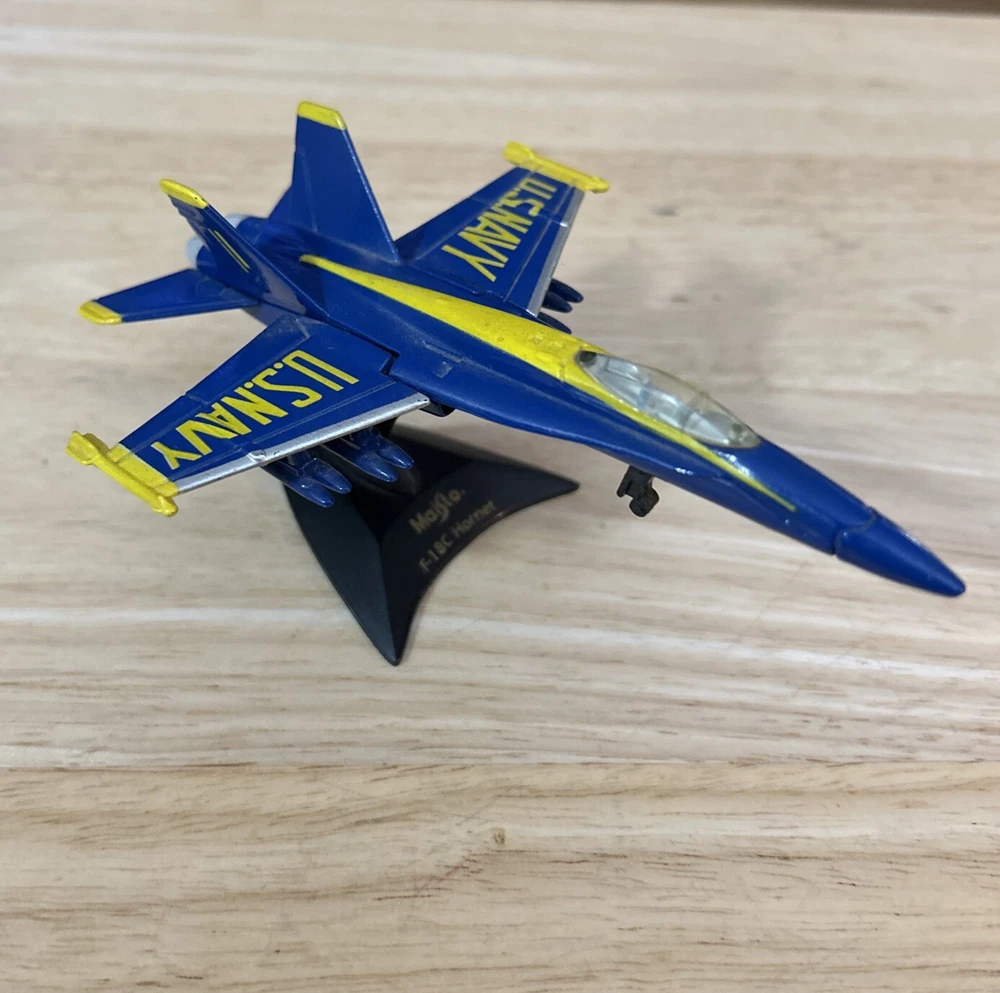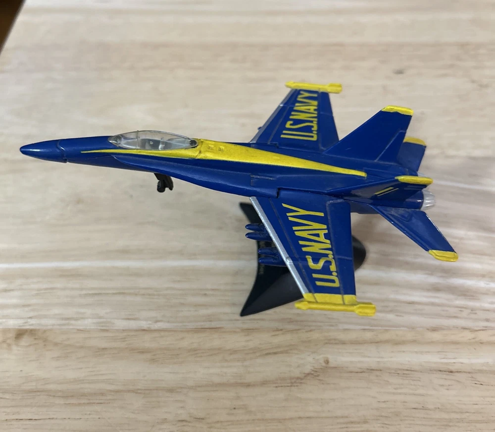 This MAISTO FA 18C model is a highly detailed diecast metal plane that is perfect for collectors and enthusiasts. With its beautiful blue and yellow color scheme, this model is a great representation of the U.S. Navy's aircraft. The plane is made to a 1:8 scale and features intricate details such as moving parts and a removable canopy. This model is a great addition to any collection and is sure to impress. Its quality craftsmanship and attention to detail make it a must-have for any diecast metal plane enthusiast. Get your hands on this amazing model today!