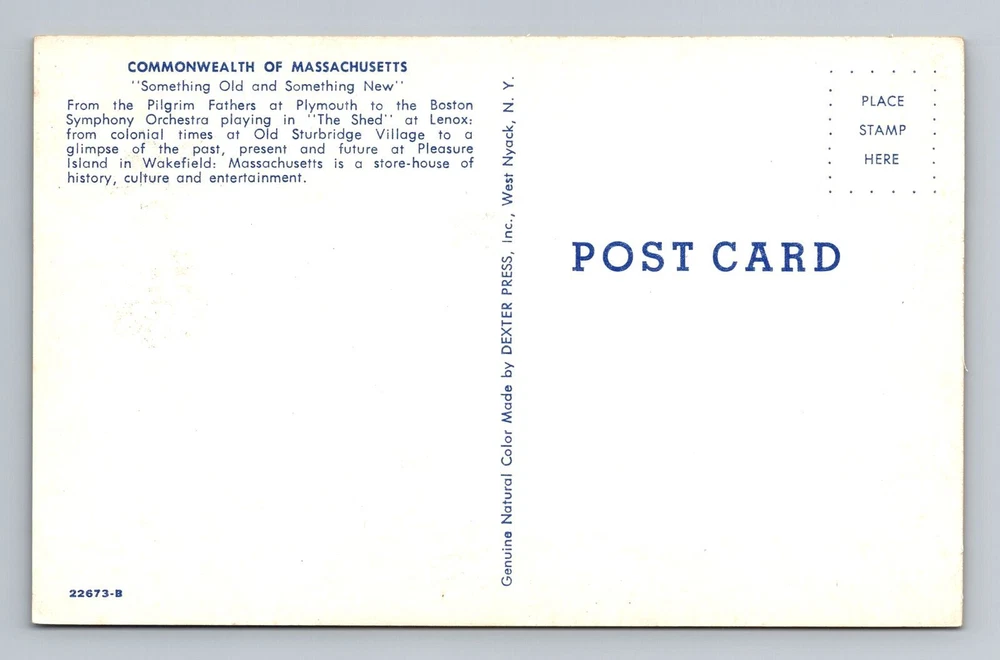 Era: Vintage City: Massachusetts Country/Region of Manufacture: Unknown Material: Paper Type: Printed (Lithograph) Country: USA Unit of Sale: Single Unit Original/Licensed Reprint: Original Subject: Cities & Towns Theme: Cities & Towns Region: Massachusetts Size: Standard (5.5 x 3.5 in) Postage Condition: Unposted
