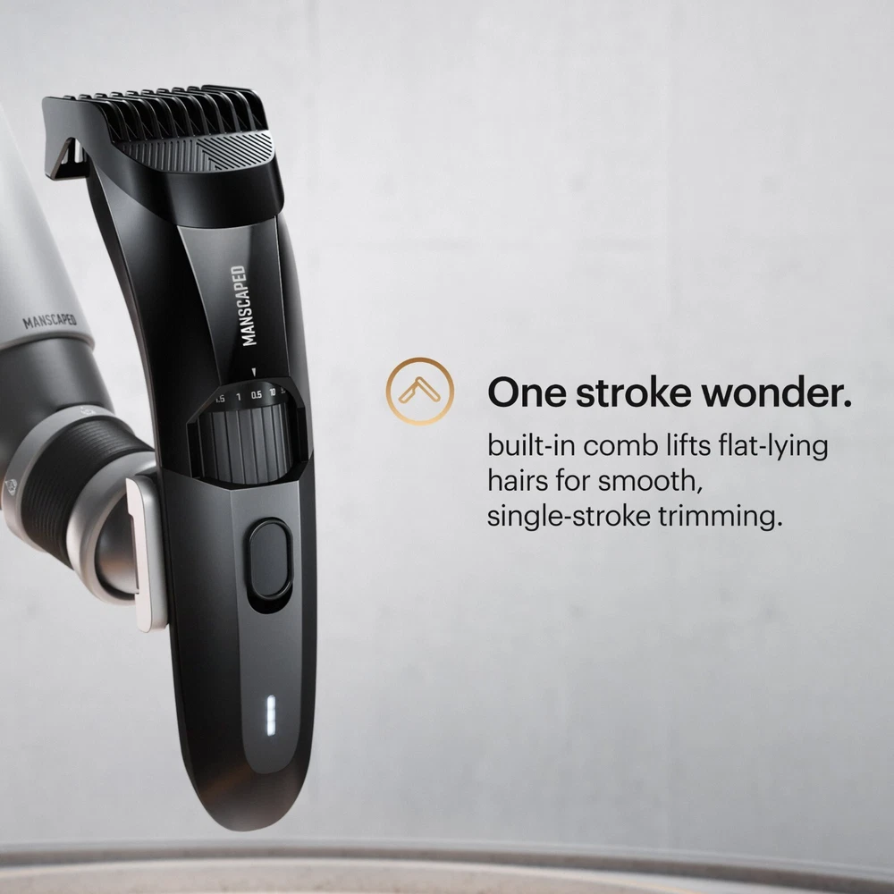 The Beard Hedger™ is a premium precision men's beard trimmer with enough power to craft your style in a single swipe. It is designed with a unique cutting angle to have its built-in comb lift flat-lying hairs for smooth trimming. Our intuitive zoom wheel helps you choose from 20 different length settings (10mm max length) so you can craft your perfect beard style. The Beard Hedger™ includes a USB-C cable, length-setting comb, and a travel case. THE BEARD HEDGER™: Our precision beard groomer comes equipped with an intuitive zoom wheel with 20 different lengths (.5mm increments up to 10mm max. length) to choose from so you can ditch the dozen clipper attachments and trim anything from a lumberjack ‘stache to stubble. ONE STROKE WONDER: our men's trimmer was designed with a unique cutting angle to have its built-in comb lift flat-lying hairs for smooth, single-stroke trimming. CHECK YOUR HEDGE: With a powerful, cordless DC motor and 41mm titanium-coated t-blade, The Beard Hedger is sharp enough to cut through the thickest facial hair with ease and no blade oil needed. TAME YOUR MANE: Built for men looking to take their beard maintenance routine to the next level, our trimmer is waterproof*, has a 7,200 RPM motor and high-performance battery for 60 minutes of use in the shower or on the go. *IPX7 rated to protect against immersion in up to one meter of fresh water for up to 30 minutes. WHAT’S INCLUDED: The Beard Hedger comes with a USB-C cable, AC adapter, length-setting comb attachment and a hard shell water resistant travel case for on the go trimming.