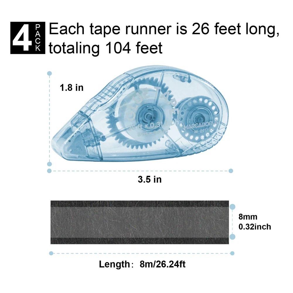 Enhanced Tape Runner Design for Scrapbooking: Looking for a scrapbook tape runner that won't give you a hard time? MARCADORUS tape runners are expertly engineered for an effortless experience, making them an essential tool for any scrapbook enthusiast. Our double-sided scrapbook tape ensures a smooth application every time, leaving behind no frustration or wasted time. With our adhesive roller, you can count on a reliable hold, while the photo tape secures your memories without damage. Ergonomic Dispenser for Scrapbooking Tape: Hand fatigue is a thing of the past with our MARCADORUS scrapbook adhesive tape. Specifically designed for comfort, these scrapbooking tape tools fit naturally in your hand. Whether you're reaching for our double-sided tape runner, your crafting sessions will feel effortless. Pristine Adhesion with Crafters Tape: MARCADORUS crafters tape delivers with adhesive solutions that protect your work. Say farewell to mess and hello to immaculate pages with our tape runner for scrapbooking. Guarantees a strong bond, and with our double-sided tape dispenser, every photo stays exactly where you want it. Art Supplies Infused with Creativity: Every MARCADORUS product, from our scrapbook glue tape roller to our double side tape for crafts, is a tribute to artistic passion. We believe in the transformative power of creativity, which is why our glue tape for scrapbooking isn't just a tool—it's a gateway to expressing the human spirit. Customer Care with a Personal Touch: At MARCADORUS,double-sided tape roller is more than a product—it's a promise of quality. When you use our glue tape for scrapbooking, you're not just crafting; you're creating with confidence, knowing we're here to support you with every double-sided tape for scrapbooking need.