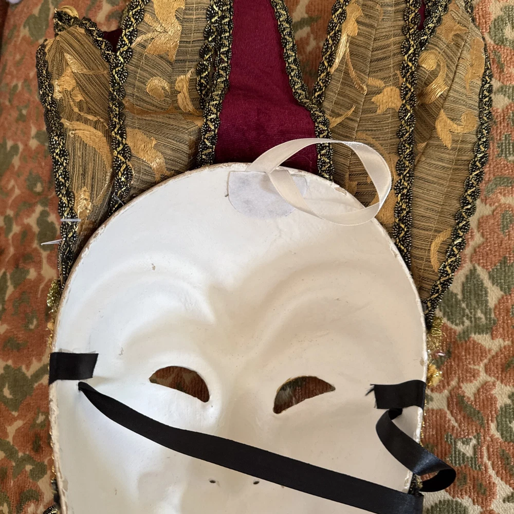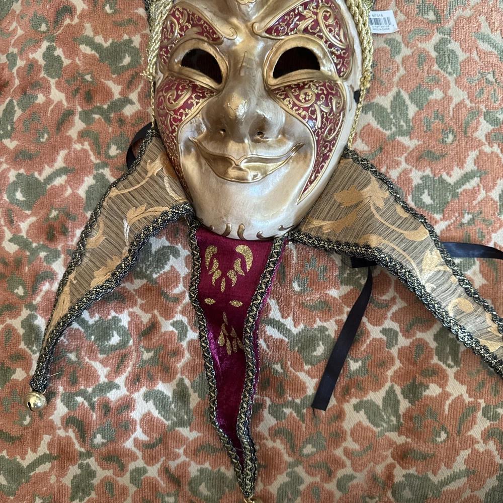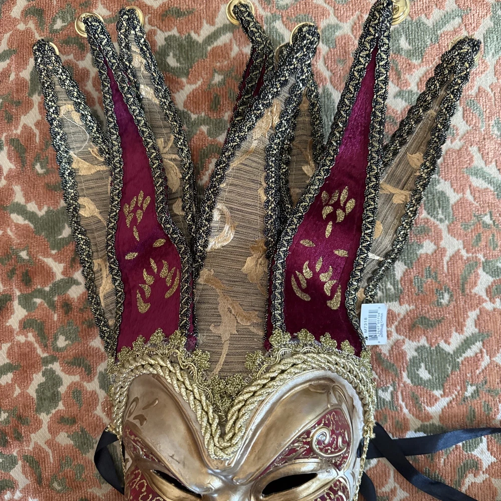 MARDI GRAS MASK JESTER~ MAROON ~ Joker Masquerade Costume Party Mask