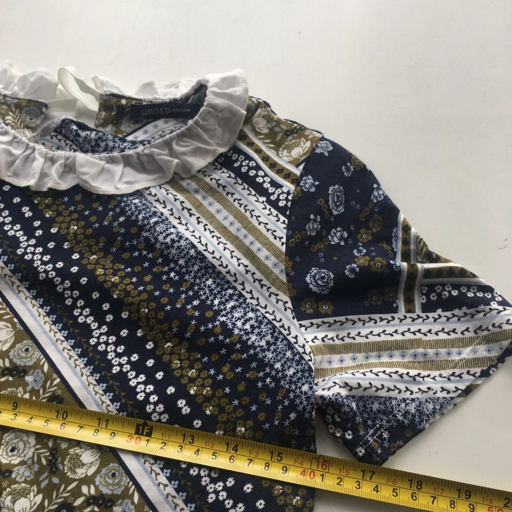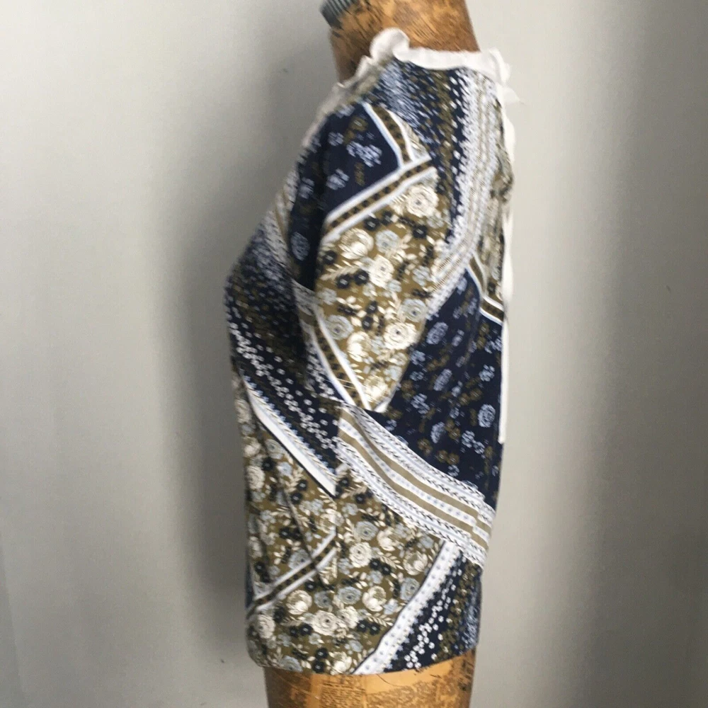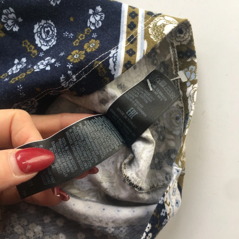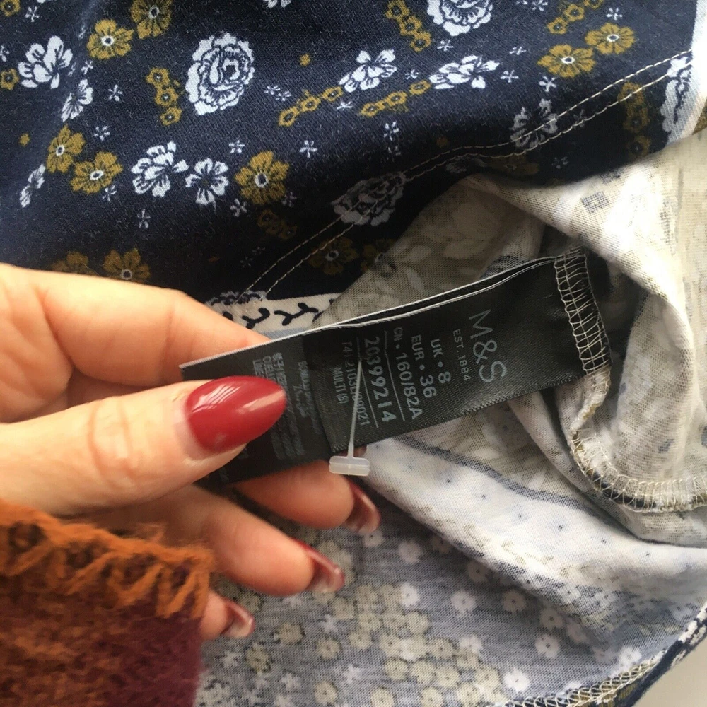MARKS AND SPENCER TOP T SHIRT Navy paisley UK 8 tie nack See images indicating sizing across pit to pit and length In GOOD used condition some light signs of use no rips stains or faults, excellent quality great style Shipped promptly within one day of sale free of charge, for premium delivery please select at check out for an additional charge