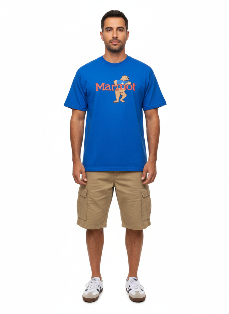 Capture a playful vibe with this vibrant Marmot Mountain Works t-shirt. The eye-catching graphic features a cool bear in sunglasses and a Marmot tee, exuding a fun and relaxed personality. Crafted for comfort and style, this tee is perfect for casual outings, outdoor adventures, or simply lounging with friends. Measurements: • Length: 28.5 in • Chest (pit to pit): 22.5 in Department: Men Theme: Nature, Funny Fit: Regular Sleeve Length: Short Sleeve Pattern: Graphic Print Type: T-Shirt Features: Breathable, Easy Care Neckline: Crew Neck Fabric Type: Knit Material: Cotton, Polyester Accents: Logo Season: Summer Model: Sportsman Garment Care: Machine Washable Country of Origin: China Keywords: Marmot t-shirt, graphic tee, bear graphic, casual wear, outdoor apparel, streetwear, summer fashion, gift for him, fun graphic, comfortable, sporty, leisure