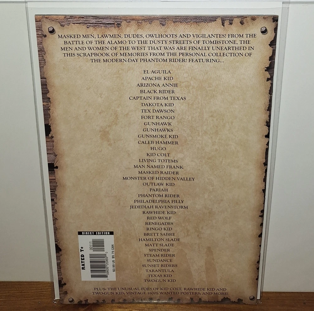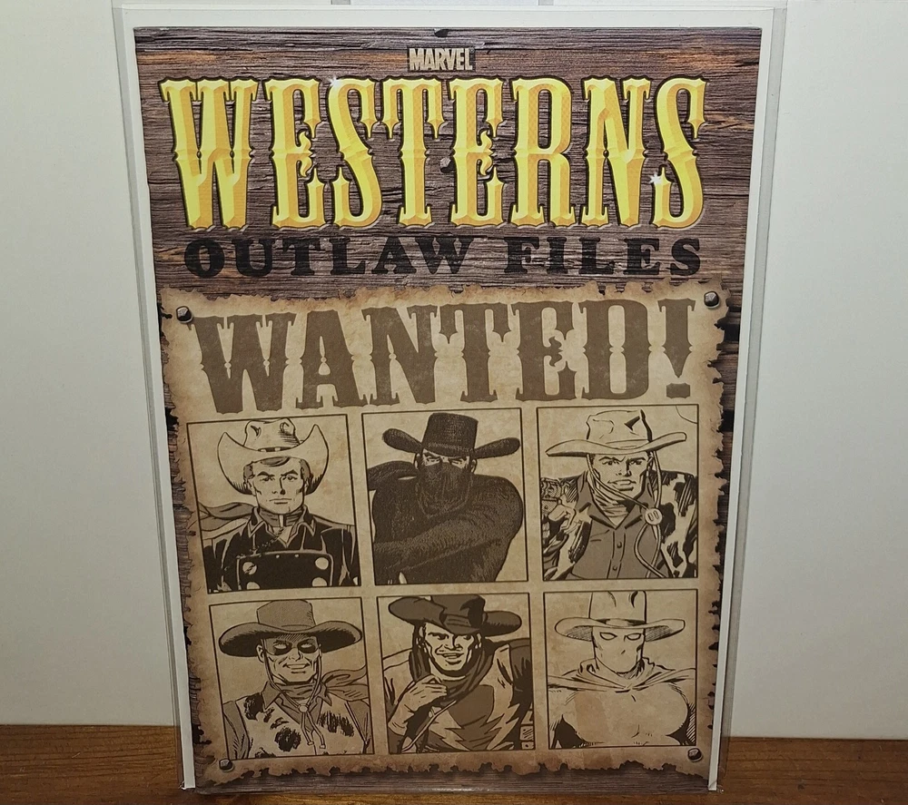 Dive into the rugged world of the Marvel Westerns with The Outlaw Files #1, a rare gem from Marvel Comics, published in 2006. This single issue comic book brings together the iconic characters Kid Colt and Rawhide Kid in an action-packed adventure that's sure to delight fans of the Modern Age of comics. With its vibrant colour style and gripping storytelling, it's a must-have for any follower of the Marvel Universe. Crafted by the legendary team of Stan Lee, Jack Kirby, and Carmine Di Giandomenico, this comic is a fine piece of artistry. Featuring the first printing of its kind, this English language issue number 1 sets a high bar for collectors and enthusiasts alike. Whether you're a long-time admirer or a newcomer to the series, The Outlaw Files #1 is an exemplary addition to any comic collection.