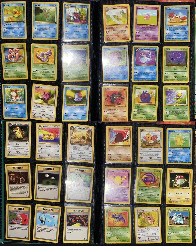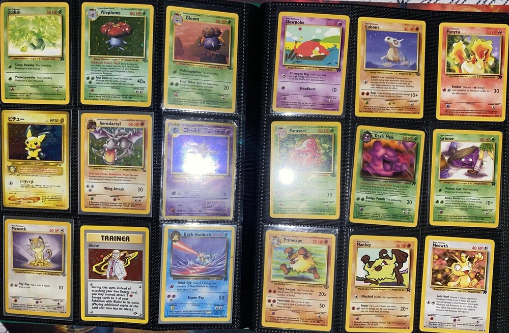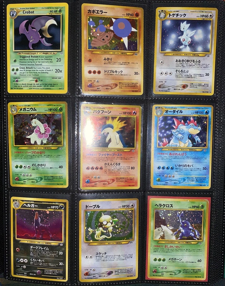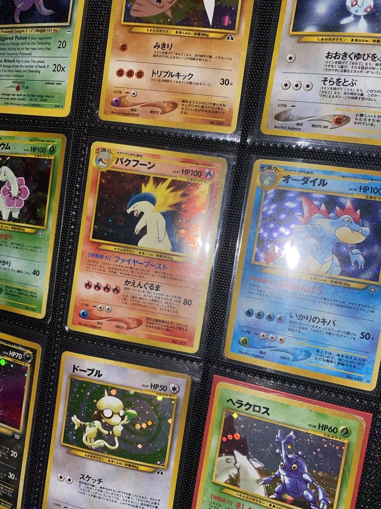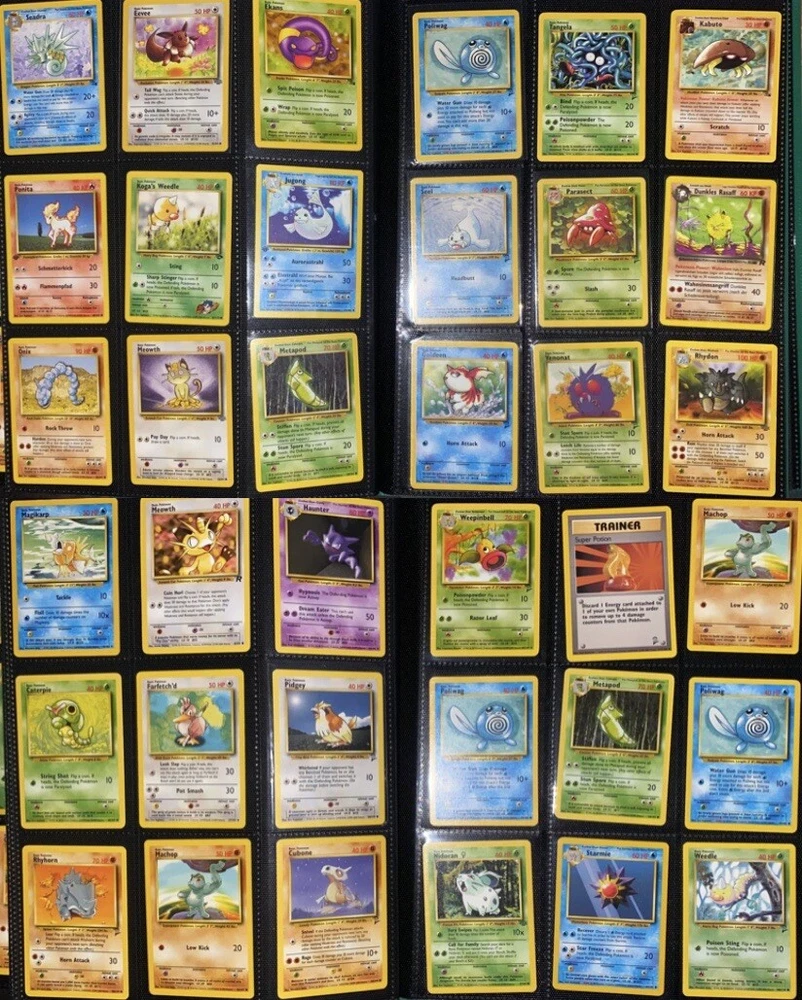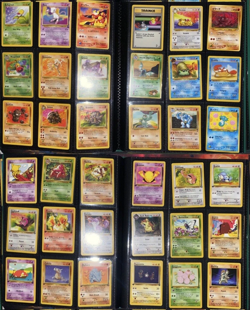 This offering is a massive lot of 360 vintage Pokémon cards, featuring a variety of sets including Base Set 1st Editions and more. The collection includes cards in Standard and Japanese sizes. Among the characters featured are Zapdos, Charmander, Dragonite, Venusuar and more. Manufactured in 1999 by Wizards of the Coast and Nintendo in the United States, these cards have a vintage appeal and include unique features like being Shadowless or 1st edition and having a Holo finish. Ideal for Pokémon TCG enthusiasts and collectors, this lot offers a diverse selection of classic cards from the early days of the game. 360 card binder plus 4 graded cards Graded cards - PSA 6 Base Set Ninetails PSA 4 Japanese Fossil Dragonite w/ a light holo bleed PSA 5 Japanese Gym Series Erika’s Venusuar Holo PSA 9 Pikachu Neo Genesis Some of the binder rares - 1st Ed Jungle Vaporeon 1st Ed Fossil Zapdos with missing holo error Prerelease Dark Gyarados Light Dragonite with a Swirl Rockets Zapdos and Base Set Zapdos Fossil Haunter with a Swirl and Aerodactyl Holo Erikas Vileplume Brock’s Ninetails and Rhydon Neo Meganium, Feraligatr & Typhlosion And many other big cards. Non Holo cards range from Base set to Neo and a few 1st editions are included. There are a few duplicates among the non holos. Message me with any questions. Happy Hunting