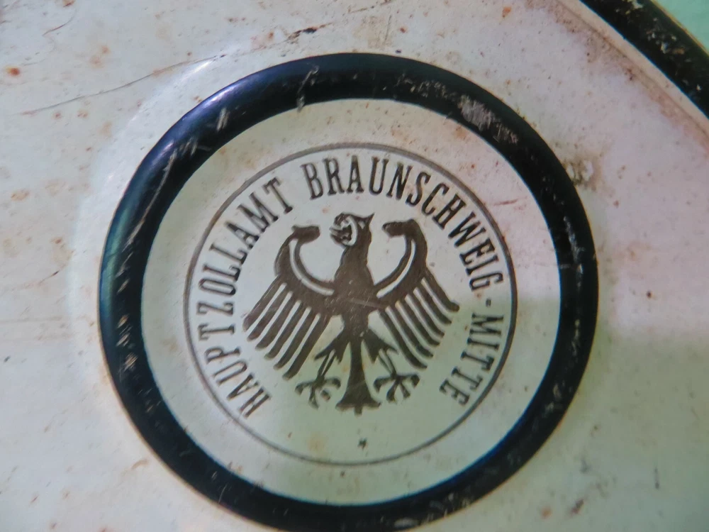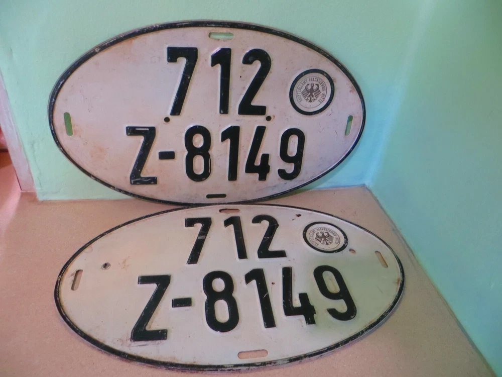 WOW,,,,WHAT A GREAT LOOKING PAIR OR SET OF ORIGINAL VINTAGE LICENSE PLATES FROM GERMANY 712 Z-8149 OVAL HAUPTZOLLAMT BRAUNSCHWEIG MITTE 13 3/4 X 8 1/4 INCHES IN SIZE what you see is what you will get 1 only IN GREAT CONDITION FOR ITS AGE, ANY QUESTIONS PLEASE ASK I SHIP WORLD WIDE I SHIP FAST I SHIP WELL PROTECTED I SHIP IN A BOX I SHIP WITH BUBBLE WRAP I SHIP WITH TRACKING NUMBER , YOU CAN TRACK ITEM FROM MY DOOR STEP TO YOUR DOOR STEP BIN-105 I SHIP WITH USPS-FED-EX-UPS, WHICH EVER IS THE CHEAPEST I WILL LET YOU KNOW WHEN ITEM SHIPS ANY QUESTIONS PLEASE ASK ANY INFO THAT I MAY HAVE MISSED PLEASE LET ME KNOW AS I AM NOT A EXPERT I PUT THIS WITH ALL ITEMS I LIST, ALL ITEMS ARE USED COLLECTIBLES , THE CONDITION IS WHAT YOU SEE IN PICTURES, I DO NOT EVER ATTEMPT TO HIDE ANYTHING, I TAKE PICTURES OF ENTIRE ITEM, IF YOU HAVE A QUESTION OR CONCERN PLEASE LET ME KNOW I LOVE HISTORY AND I LOVE TO LEARN ABOUT ITEM S IT IS NOT JUST ABOUT BUYING AND SELLING FOR ME , I LOVE TO KNOW AND FIND OUT ABOUT ITEMS I FIND FOR PEOPLE. I ALWAYS HOPE ITEMS GO TO SOMEONE THAT REALLY APPRICIATES IT. THANK YOU FOR VISITING MY STORE AND PLEASE COME BACK AGAIN REAL SOON PLEASE READ ENTIRE DESCRIPTION AND SEE ALL PHOTOS BEFORE BIDDING. ALL SALES ARE FINAL THANK YOU! IF I MAKE A MISTAKE I TAKE FULL RESPONSIBLE AND I STAND BEHIND EVERYTHING I SELL. I WILL MAKE IT RIGHT WITH YOU NO QUESTIONS ASKED. JUST NOTIFY ME THE SOONER I AM AWARE THE SOONER I CAN GET YOU A SOLUTION. **** There Will Be A Restocking FEE Of 25% For Returned Items That Are Returned For Reasons Other Than Not As Described. **** Beg Barter Or Steal offers you high quality estate pieces at fair and competitive prices. Your purchase will be packaged with the utmost care so it arrives safely to your home. No matter how big or small your item is. Please see testimonials in feedback ratings. Enjoy your new treasure or feel confident giving it to someone special. *** If item is not paid for in 2 days after the sale. A unpaid case will be opened and you will forfeit the item and will be relisted it given to the runner up in the Auction *** I have a large collection of vintage items from estate sales I will be listing them as quickly as I can go through them. So if you're into collecting follow me and turn on your notifications thank you for looking. On multiple purchases I will combine shipping to save you money where I can if you request a combined invoice or wait until I send you one. Shipping Information Items are packed with utmost care. Please see testimonials in feedback ratings. Shipping is often same or next day, but can occasionally take up to 3 business days. INTERNATIONAL SHIPPING WILL BE THROUGH EBAY'S GLOBAL SHIPPING PROGRAM. I HAVE NO CONTROL OVER THE SHIPPING FEE EBAY CHARGES. **--**--**--**--**--**--**--**--**--**--**-**--**--** THERE WILL NOT BE A PAPER RECEIPT WITH YOUR PACKAGE. IF YOU WOULD LIKE A PAPER RECEIPT FOR YOUR ORDER PLEASE REQUEST ONE WHEN YOU ARE PLACING YOUR ORDER. **--**--**--**--**--**--**--**--**--**--**-**--**--** Thank you for your time and consideration for the items I have for sale. Hopefully you find what you are looking for enjoy.