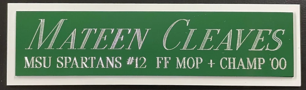 AUCTION IS FOR NAMEPLATE ONLY! PROFESSIONALLY ENGRAVED SINCE 1990 THE ALUMINUM PLATE IN TEAM COLORS MEASURES 1.25 X 4.25 COMES WITH GOLD LINE DOUBLE SIDED TAPE ALREADY APPLIED-JUST PEEL AND STICK. THE PERFECT FINAL TOUCH FOR YOUR SIGNED BASEBALL-BAT-JERSEY-HELMET-PUCK-STICK-MASK-FOOTBALL-BASKETBALL-BOXING GLOVES-SOCCERBALL-WWE-MMA-GOLF FLAG CASES AND PHOTO DISPLAYS. TOGETHER WE CAN MAKE YOUR MEMORABILIA LOOK LIKE MUSEUM PIECES. ($3.50 USA) ($14 INTERNATIONAL) TOTAL SHIPPING (1-100) TRY "COMBINE SHIPPING" IF THAT DOES NOT WORK I WILL REFUND SHIPPING OVERAGE BUBBLE MAILER WE CARRY MANY PLAYERS THAT ARE NOT LISTED ASK IF YOUR PLAYER IS NOT IN MY EBAY STORE