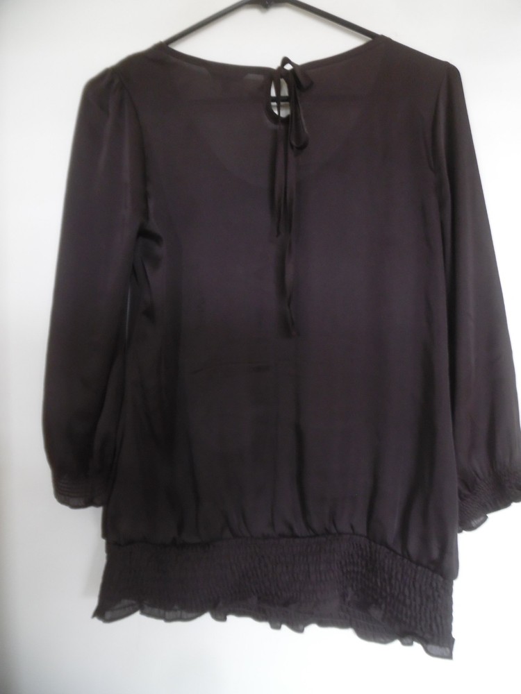 MAURICES Brown 3/4 Sleeved Peasant Top Blouse Sz S Armpit-armpit: 18" Sleeve Length 17" Length: 25" AT Combined Shipment: USA : Highest item shipping cost + $3.00. for each subsequent item.Or, you can purchase as many items as you choose and pay the flat rate of $18.75 for your Priority Mail Large Flat Rate Box which covers your entire order. Please read the disclaimer below. INTERNATIONAL SHIPMENTS: Highest item shipping cost + $5. for each subsequent item. Please read the disclaimer below. DISCLAIMER on Shipping Costs: Our intention is to keep our shipping costs as low as possible. However, depending on the item purchased (weight) and the destination, shipping rates can vary; especially 30 Day?s No Questions Asked Returns Policy: Your satisfaction is very important to us. We have a 30 days NO QUESTIONS ASKED returns policy. The item must be returned in the condition in which it was purchased. If there are labels/tags they should not be removed. If they are, the item will be sent back to you. ANY SHIPPING COSTS WILL NOT BE REFUNDED. BOTH WAYS, receiving and any returns. Please contact us for the return shipping address and authorization. ALL COMMUNICATIONS MUST BE IN WRITING & TAKE PLACE THROUGH THE EBAY SITE ONLY. No private direct email correspondence. A customer care rep. will respond to you within 24 hrs (Mon-Fri). Once we have received the merchandise and inspected it, please allow 72 hours for a refund to be issued. NO See my other listings for more great items! We accept PAYPAL. Also we have a virtual terminal with PayPal through which we can accept Visa, MasterCard, Amex, and Discover. If you do not have a PayPal account, it takes virtually minutes to open International shipments: PLEASE DO NOT PAY until we determine your shipping costs. Most of our items also have an International Flat-Rate. Although, if due to the destination or the weight we are unable to honor the rate mentioned in the item?s listing, we will cancel your order and leave you positive feedback. Usually we use the US Postal Service. The best international rate for an international shipment is First Class (up to 4 lbs.)If your items exceed 4 lbs. we may pack them into two separate packages (and notify you of this).You still are eligible to take advantage of the combined shipping rates, even if we have packed them into two separate packages. The fees for packaging, shipping, insurance, Customs Duty Charges on international shipments are all the responsibility of the Buyer and are not included in the purchase price. If the item(s) are gifts, we could indicate ?GIFT? on the customs form so you would avoid paying more on duty. Add a map to your own listings. FREE Trial!