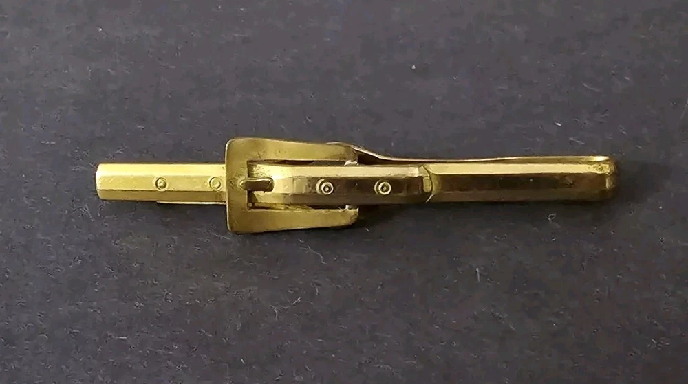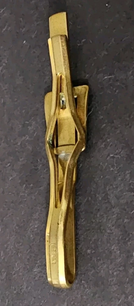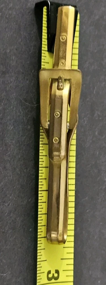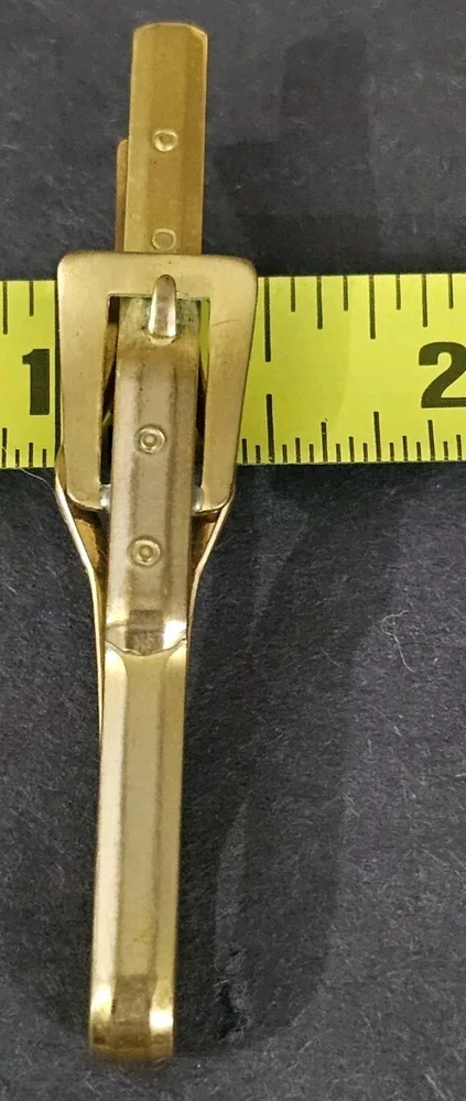 Add a unique touch to your outfit with this vintage Anson tie clip. The multi-tone gold clip features engraved details and an embroidered belt buckle design, perfect for adding a Western flair to your fashion. Measuring at 2 1/2" in length, this tie clip is a statement piece that is sure to catch attention. If you have any questions, please feel free to contact me on eBay messenger! Very motivated seller and will accept any respectable counter offer sent in my direction! Thank you so much for reading this post from Foxy Stang Upcycler Store! 🦊Have A Wonderful Foxy Stang Day!!!🦊