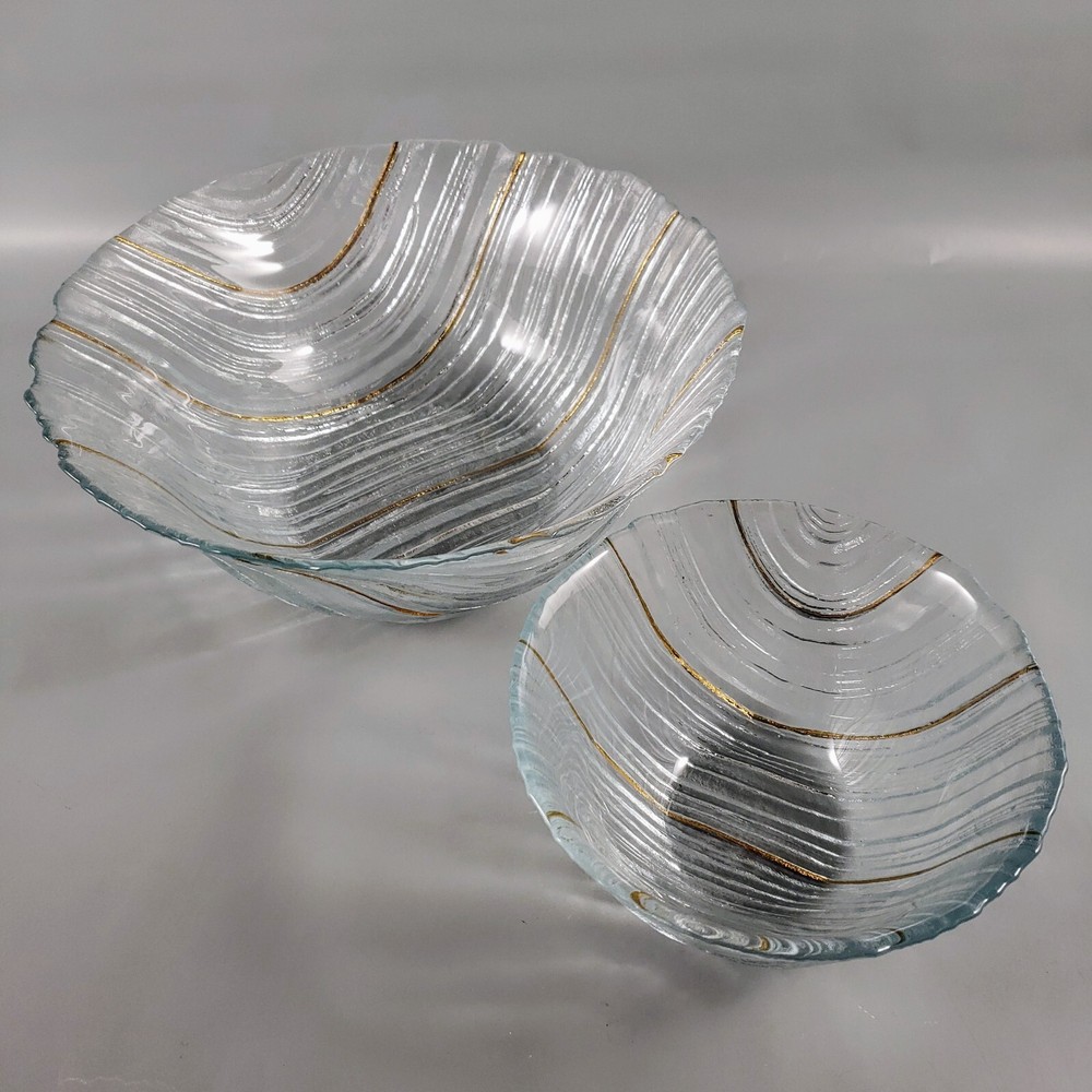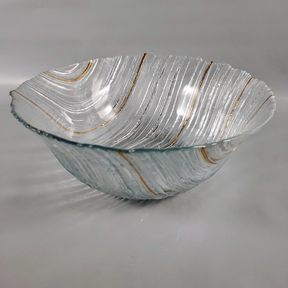 Vintage Textured Glass Chip Dip Bowl Set • Textured • Very light blue, clear glass • Gold stripes • Has a hand blown / hand made feel, but may have been pressed or fused • Unmarked, Unsigned ** MEASUREMENTS ** • Total weight of all items: 3 lb 14 oz ~~ Small Bowl ~~ • 6" diameter • 3¼" tall ~~ Large Bowl ~~ • 10" diameter • 4½" tall ** CONDITION DETAILS ** • VERY GOOD, LIKE NEW, previously owned condition • No chips, cracks, crazing, or other damage noted • See photos for additional condition details ** PHOTOS ** • Photos provide a visual inspection of the item(s) prior to purchase & are considered a part of the item(s) description. • Please VIEW ALL PHOTOS carefully prior to bidding, submitting an offer, or purchase. • Our items sold are typically vintage or antique & previously owned & used. • Normal use & age related wear is expected. • We do our absolute best to depict the condition of the item(s) in both of the "Item Details" section, as well as in the photos. • We are happy to provide additional photos & answer any questions if needed! • Feel free to make an offer! No price is set in stone! Thank you for taking the time to view our item! - Pieces of the Past KC Who we are… A small, family run business located in the heart of the Midwest! We offer a variety of pre-owned vintage & antique items such as CERAMICS, PORCELAIN, ART GLASS, JEWELRY, and EPHEMERA acquired from local estate sales, auctions, & antique stores. We want to provide you with the best service possible! If there is ANY issue with the item delivered, please contact us prior to filing a return or leaving feedback. We would greatly appreciate the opportunity to assist you & provide a resolution! ** SHIPPING ** • Items are carefully packaged & shipped within 1 business day of payment made - Items are normally shipped via USPS - Feel free to request an alternative service & we're happy to accommodate in any way possible! - We do NOT charge for the cost of shipping supplies, as this is OUR cost to do business • Shipping prices are quoted by eBay through the USPS site - Calculated shipping is based upon your location & the package measurements - We obtain accurate measurements of each package to ensure prices are calculated correctly • PLEASE REVIEW & CONFIRM your billing information & shipping address prior to completing the purchase - Buyer is responsible to provide accurate billing & shipping information • CANCELLATION of purchase after payment has been processed will be refunded minus any fees incurred by the seller that eBay will not refund ** INTERNATIONAL BUYERS ** Please Note the Following: • Import duties, taxes & charges are NOT included in the item price or shipping charges • These charges are NOT within the control of the seller & are the buyer's responsibility • Please check with YOUR country's customs office to determine what these additional costs will be prior to bidding/buying - These charges are normally collected by the delivering freight (shipping) company, or when you pick the item up • We DO NOT mark merchandise values below value or mark items as 'gifts', as US and International government regulations prohibit such behavior • Please allow at least 1-2 weeks, or more for delivery - Customs clearance times vary widely • Insurance is included as per eBay's International Shipping Policy