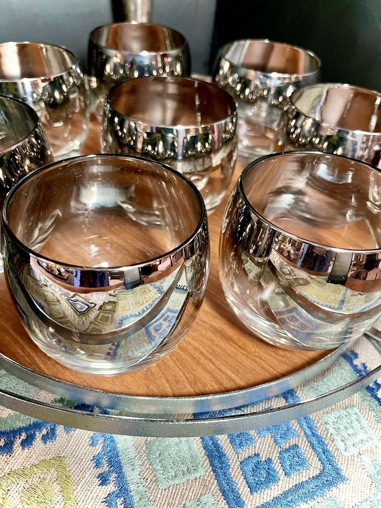 The MCM Mercury Ombré Viteron Queen’s Lusterware Roly Poly Barware 10 Pc Set is a vintage collection of round-shaped tumbler glasses, an ice bucket, and a tray, made popular again by the ever-loved Mad Men TV series. These sweet round tumblers are reminders of the time of the Space Age and its mercury/mirror finish was all the rage of the Nuclear Family! It is perfect for all occasions and would make a great gift. Manufactured in the 1960s by Queens Lusterware, this American-Mid-Century themed barware set is a stylish addition to any home bar (recommended hand wash only for maintenance). Please note that the “wood” tray is particle board. It is removable. (Would be lovely replaced with a mirror!) The mercury ombré is in wonderful condition - Please use photos as part of description. I did my best to provide photos that would answer most of your questions (condition, size & shape, wear due to age, etc.), but should you need further information, please don’t hesitate to message me! 💝 100% of your purchase goes to provide meals, shelter and hope through our Addiction Recovery Program here at The Market Street Mission, Morristown, NJ. Thank you!