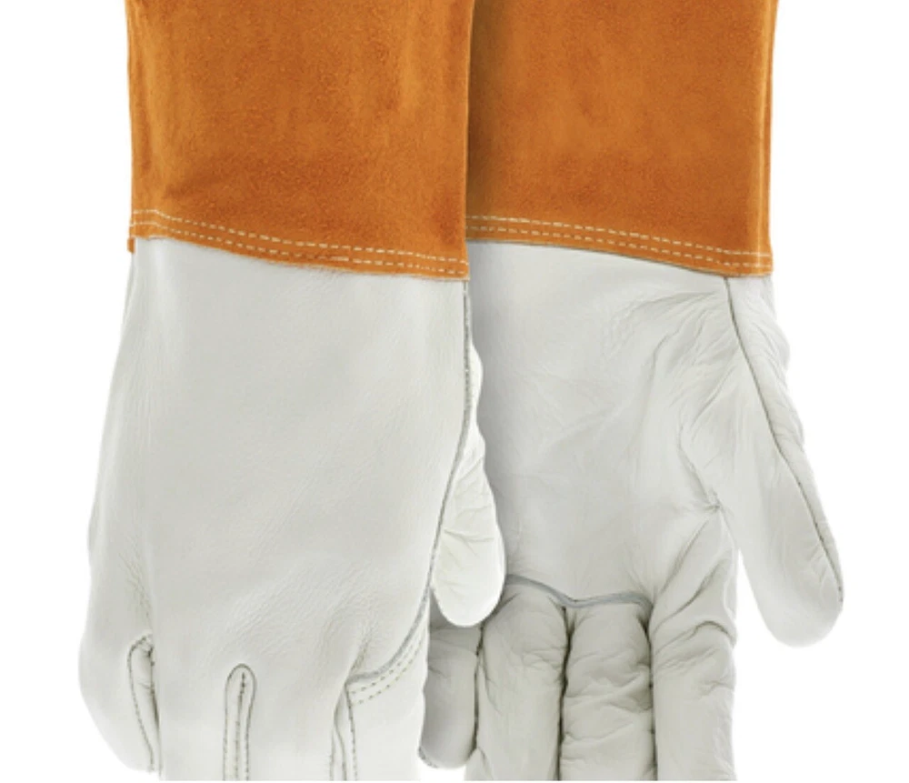 Glove Type,Standard, Wing Thumb;Overall Length;Material,Leather;Color,Beige;Cuff Type,Gauntlet, Unlined;Application,Construction, Mig/Tig, Millwright Operations, Ship Building, Welding; Brand MCR Safety Mfr. Part# 4950XL Campbell Part# MCR4950XL