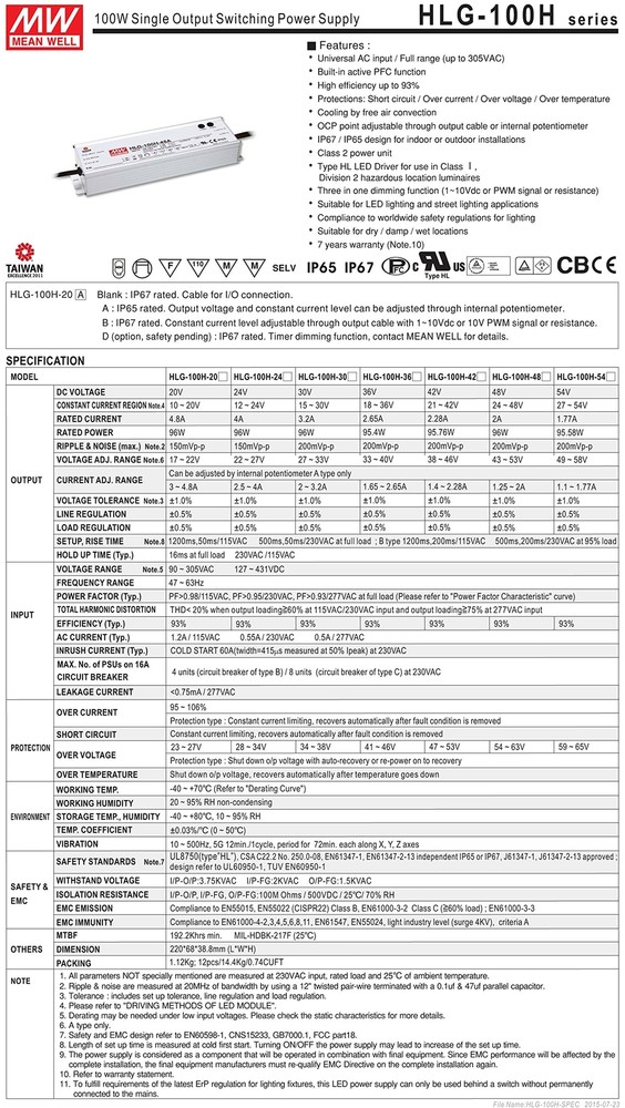 The product type is 100W LED Driver Single Output Switching Power Supply 30V @ 3. 2A, this product is made in China and manufactured by Mean Well. Primary Output Voltage (VDC): 30 Output Current (Amps): 3. 2 Maximum Output Power (Watts): 96 Input Voltage (VAC): 90 to 305 Input Frequency (Hz): 47 to 63